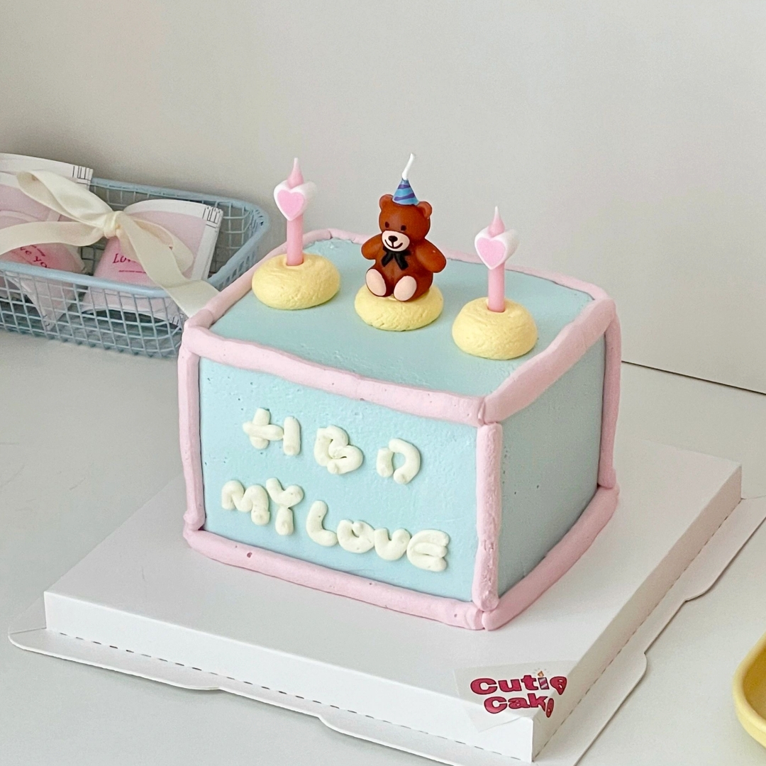 網紅ins風愛心生日蠟燭蛋糕裝飾擺件卡通派對帽小熊蠟燭烘焙插件