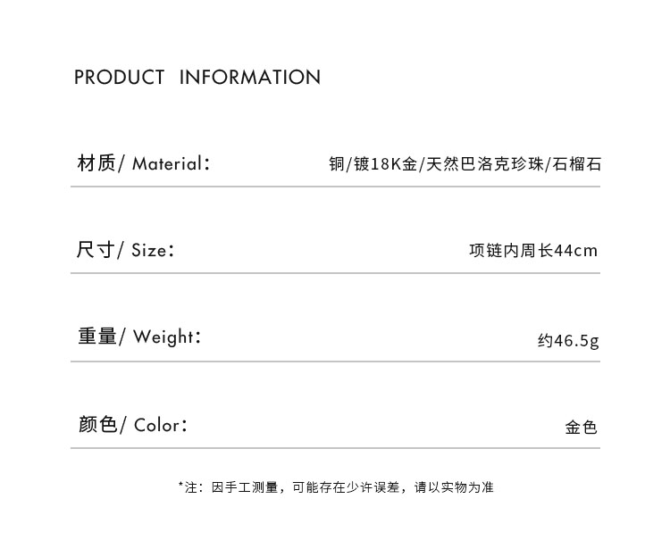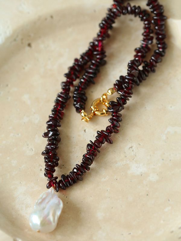TU JEWELRY 歐美ins天然巴洛克珍珠石榴石項鏈小眾設計高級鎖骨鏈