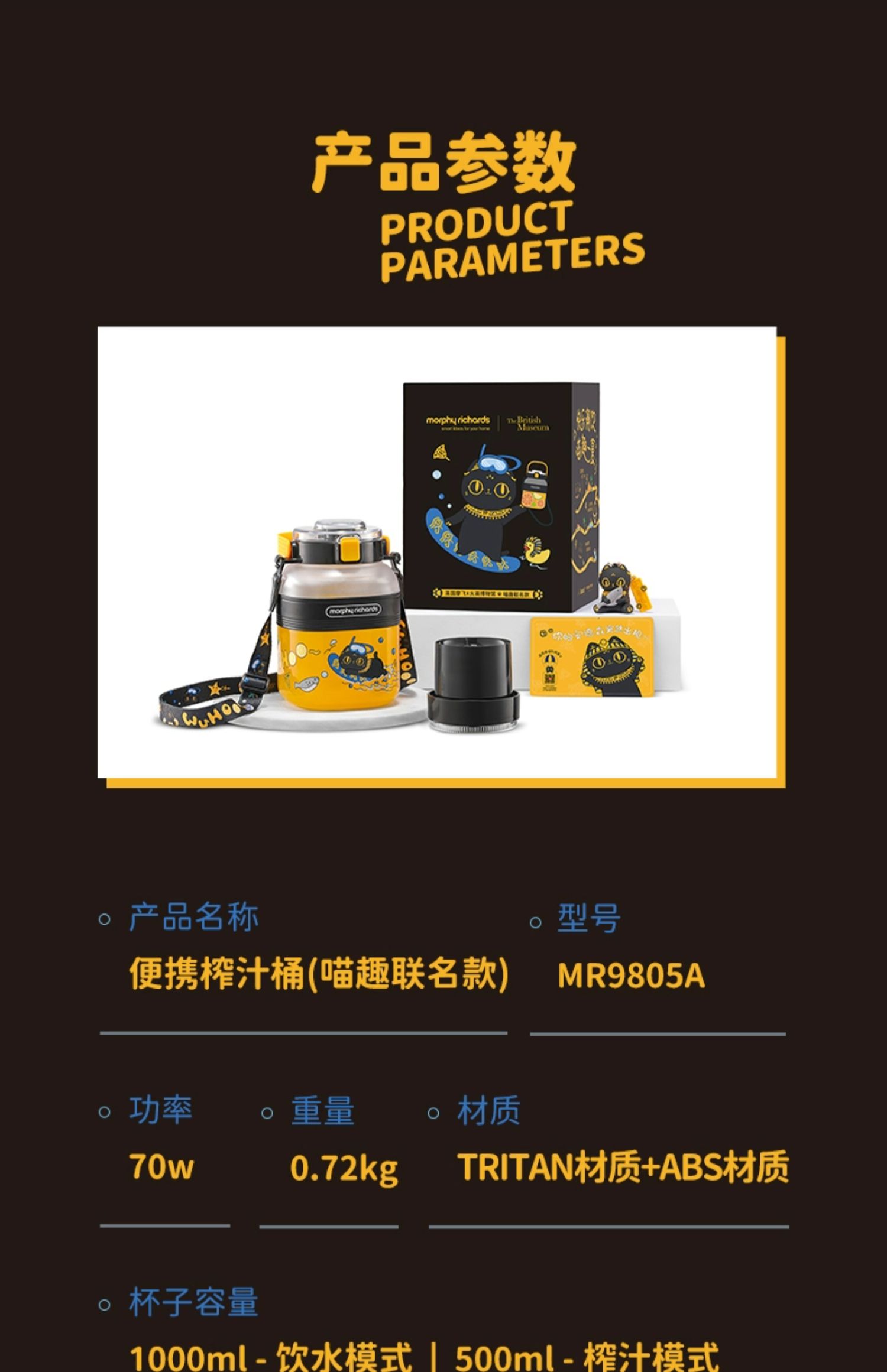 摩飛榨汁桶充電無線果汁機多功能便攜直飲果汁杯榨汁杯喵趣聯名款