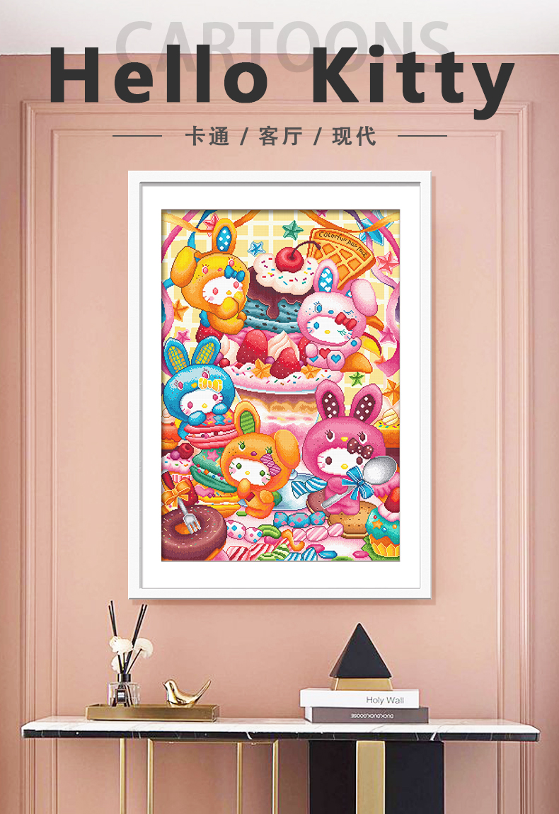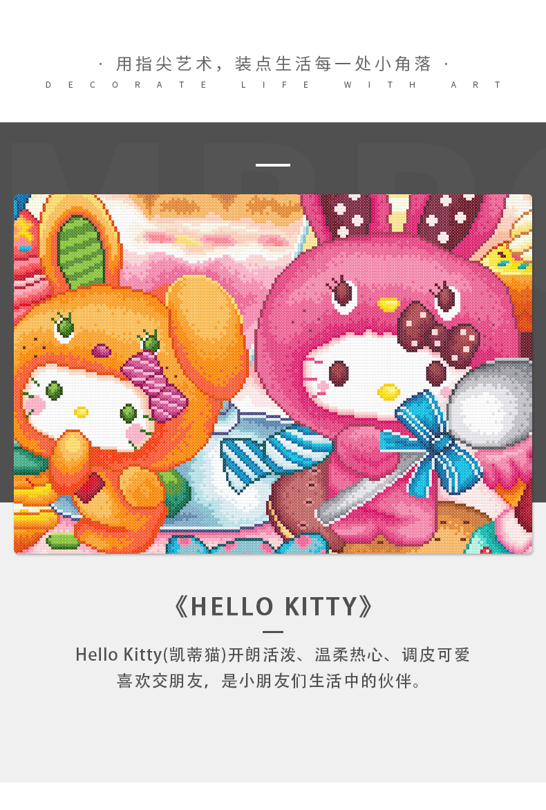 ks十字繡新款客廳掛畫自己繡手工繡刺繡線繡卡通動漫Hello Kitty