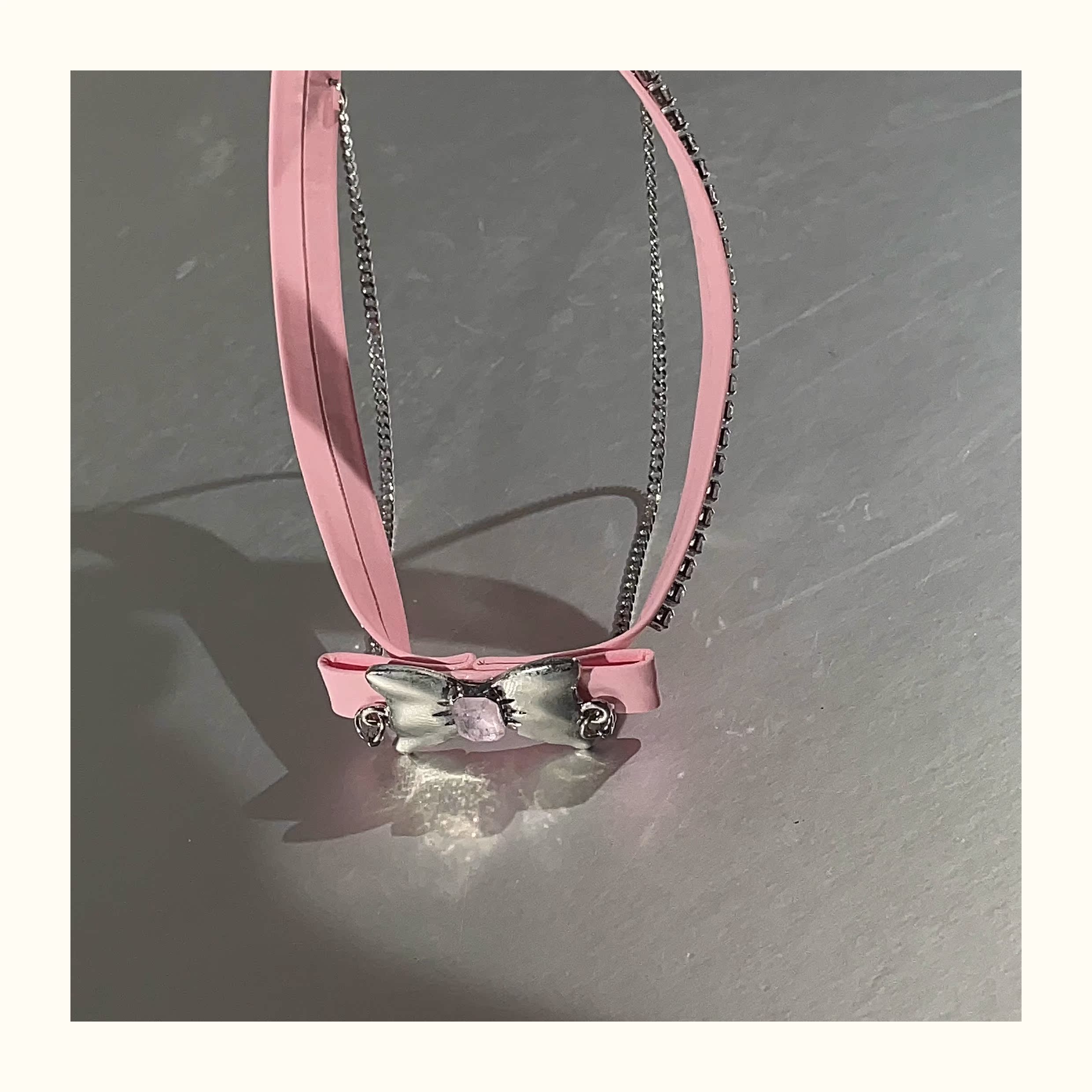 粉色皮革蝴蝶結流蘇項鏈choker百搭小眾頸鏈甜酷風辣妹鎖骨鏈