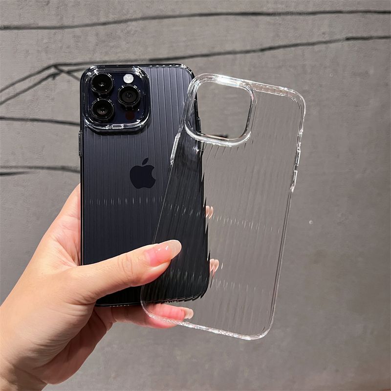 瓦楞光柵透明磨砂適用蘋果14promax手機殼不發黃iphone15新款超薄裸機手感13簡約12小眾11高級感男女pm十五