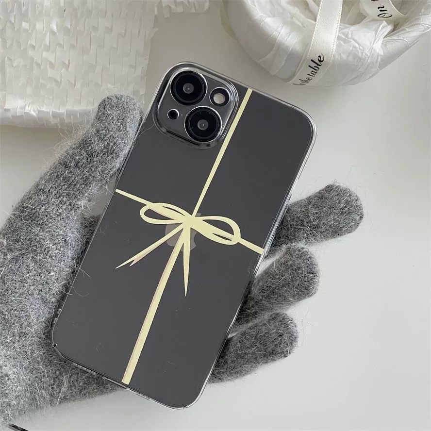 簡約禮物蝴蝶結細絲帶ins風適用于蘋果14p手機殼透明個性 11/12promax高級xs/xr防摔7p