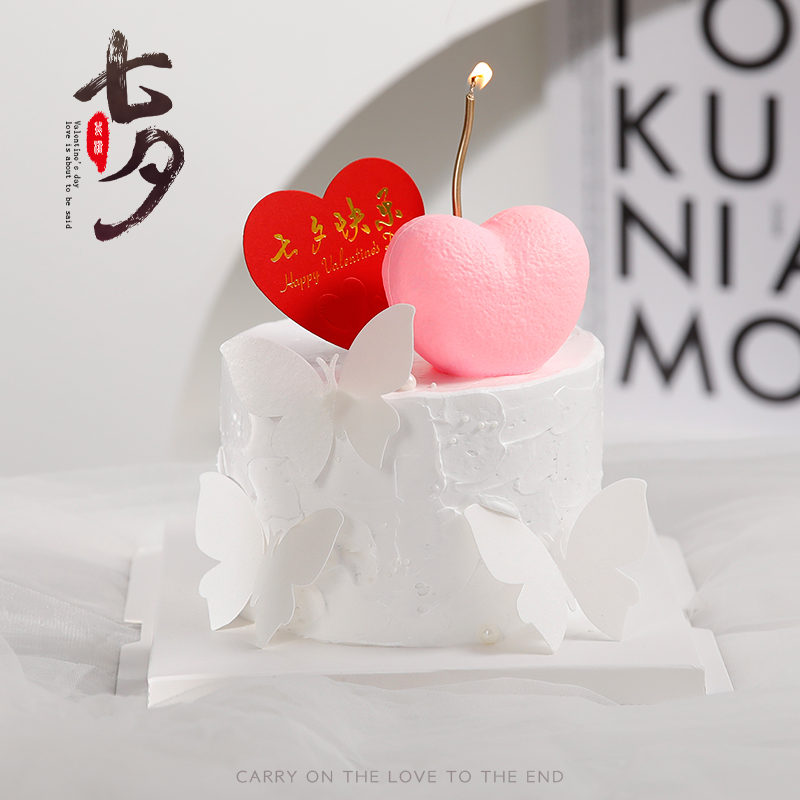 七夕情人節蛋糕裝飾發光愛心燈擺件網紅七夕快樂曲線蠟燭蝴蝶插件