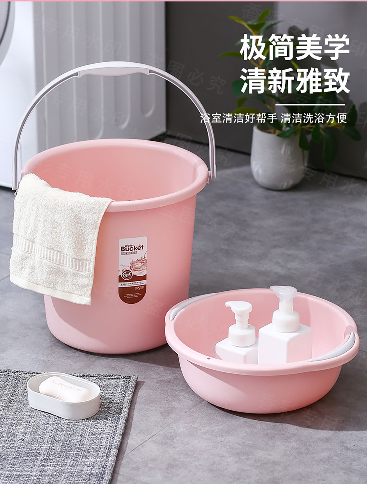 大號手提加厚塑料水桶家用儲水用學生宿舍用洗衣桶洗澡桶盆套裝
