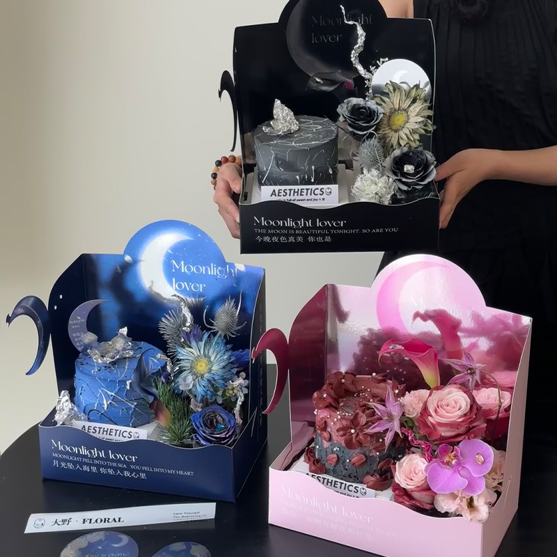 網紅同款七夕情人節蛋糕裝飾月光愛人浪漫宇宙系手提包裝盒禮物盒