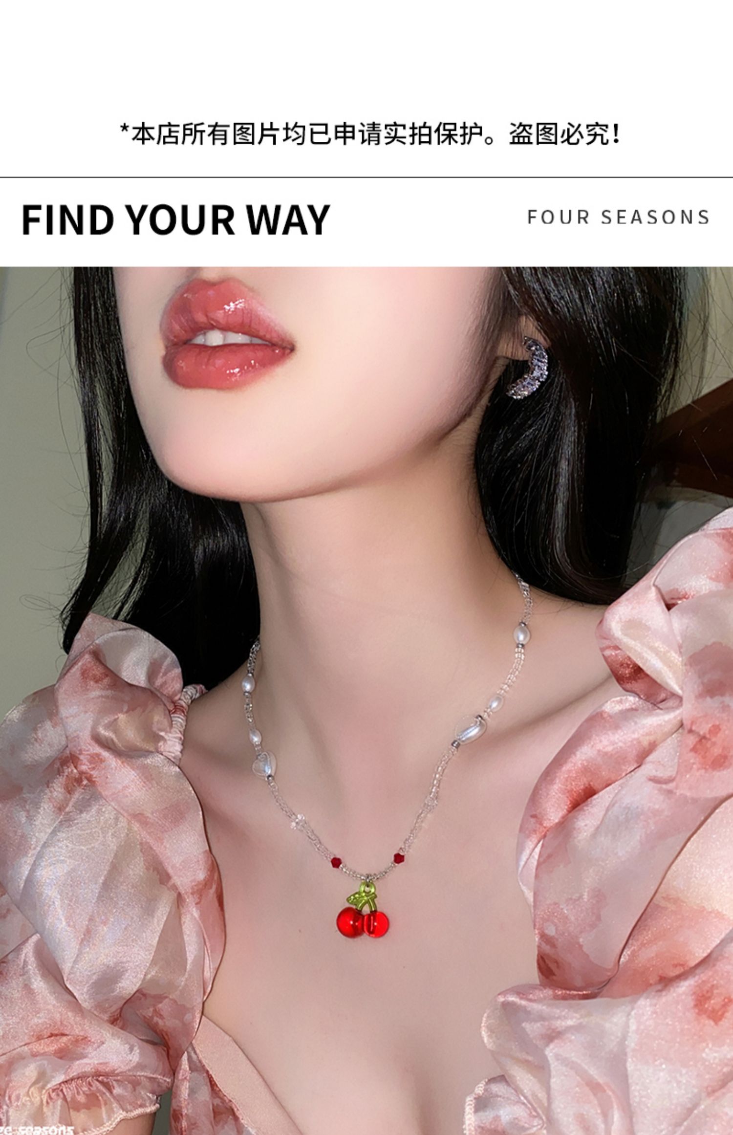車厘子少女適合夏天短款氣質鎖骨鏈