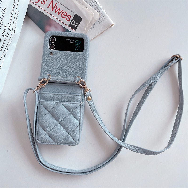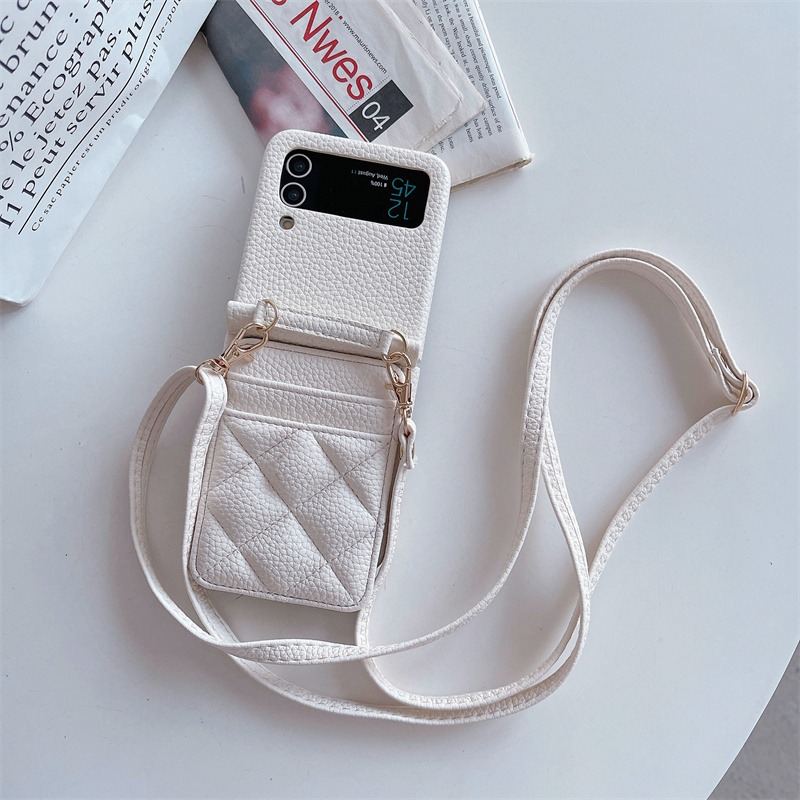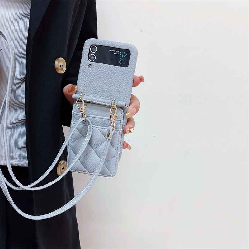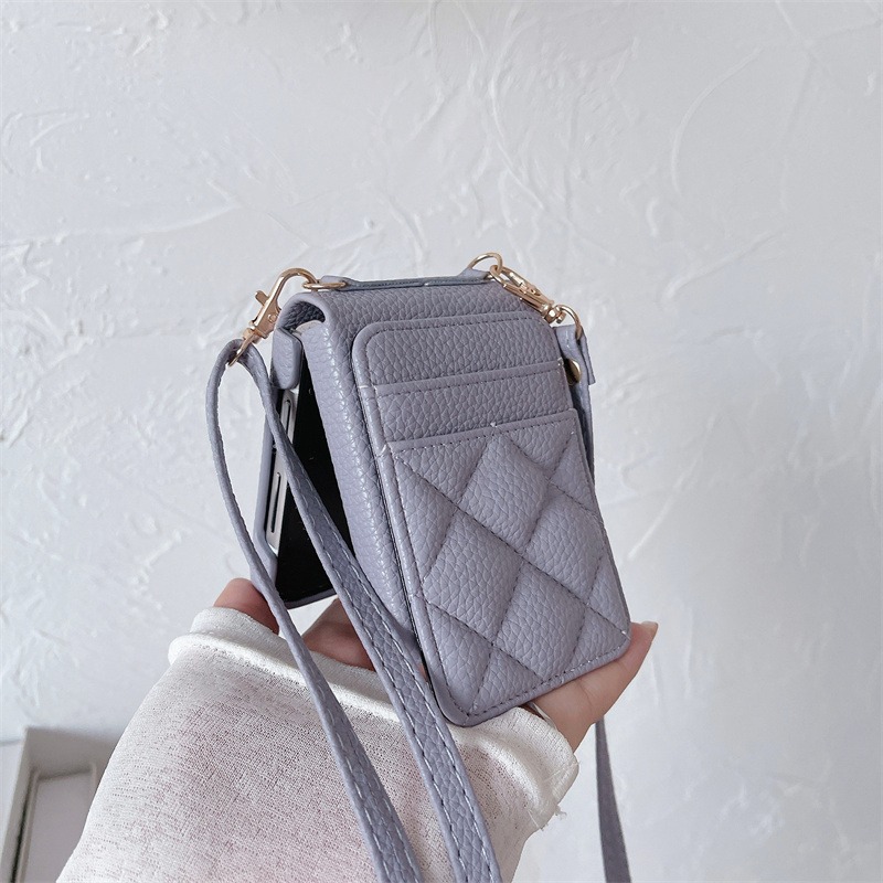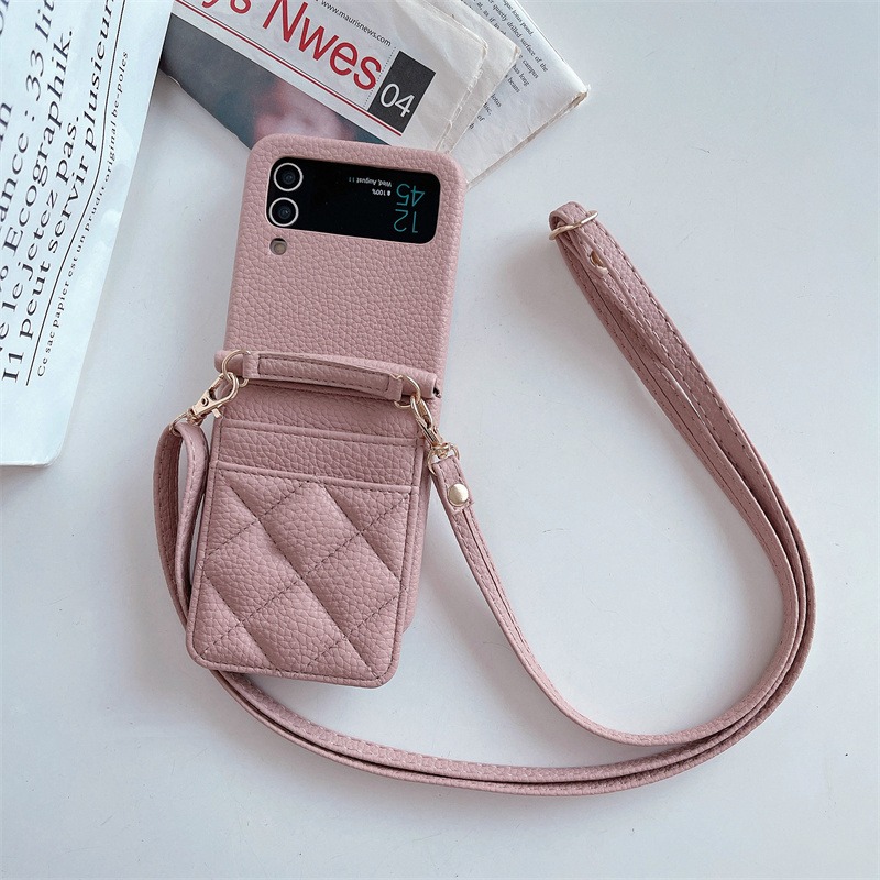 斜挎卡包適用三星zflip5手機保護殼5摺疊屏3女GalaxyZFlip4外殼3防摔zip5插卡zlip5保護套filp小摺疊flip菱格
