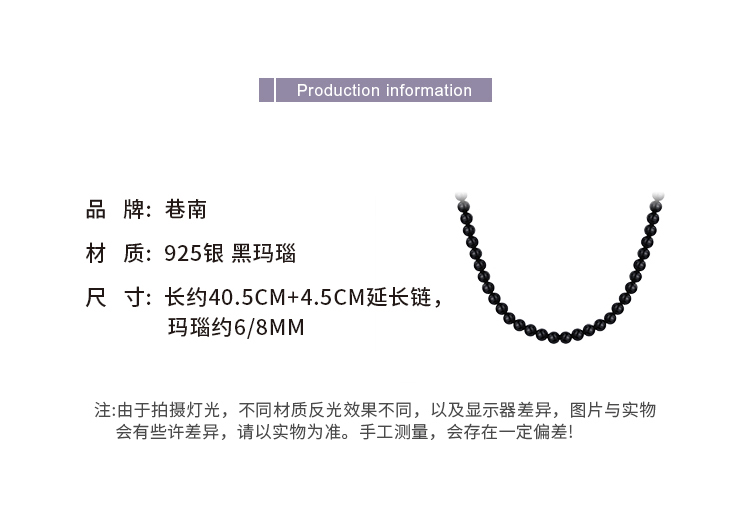 XIGN黑瑪瑙項鏈女2023新款爆款高級感鎖骨鏈925純銀輕奢小眾頸鏈