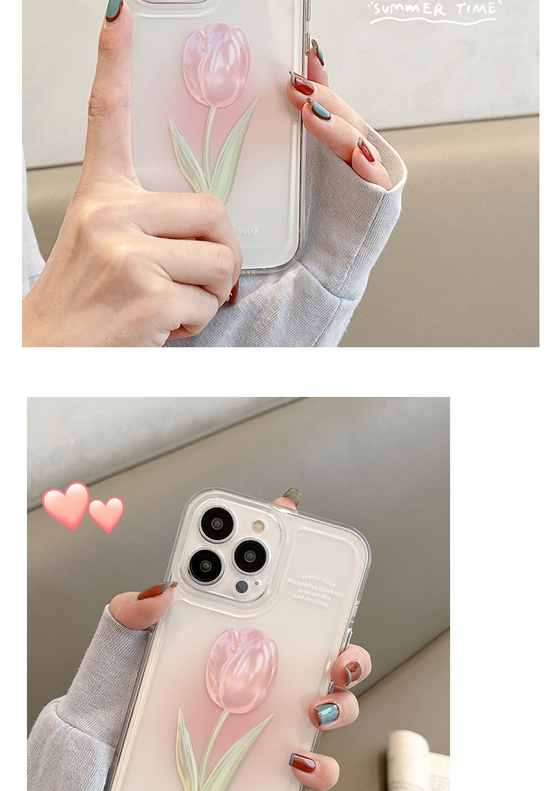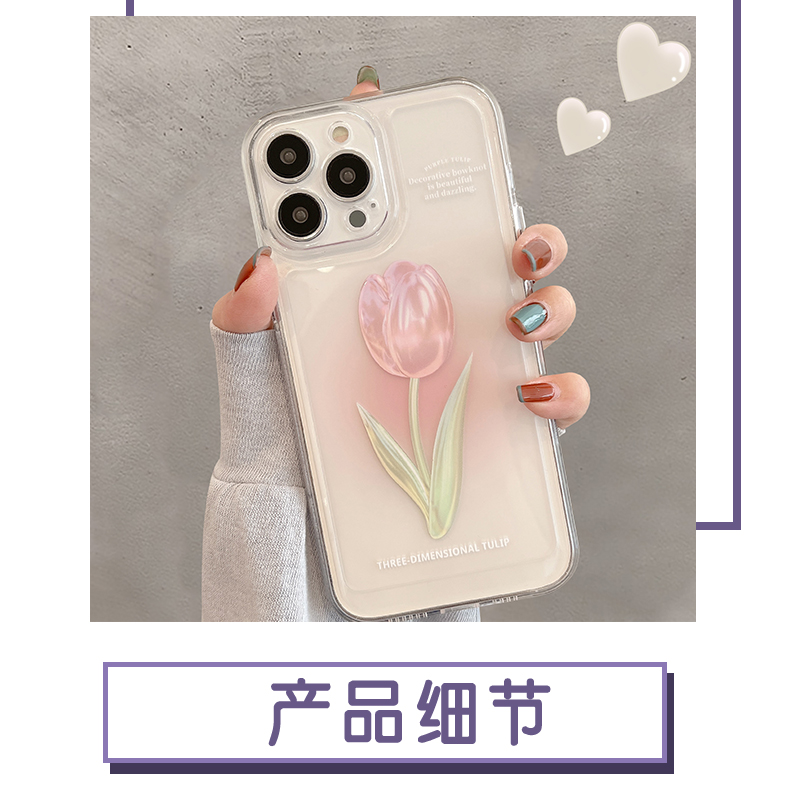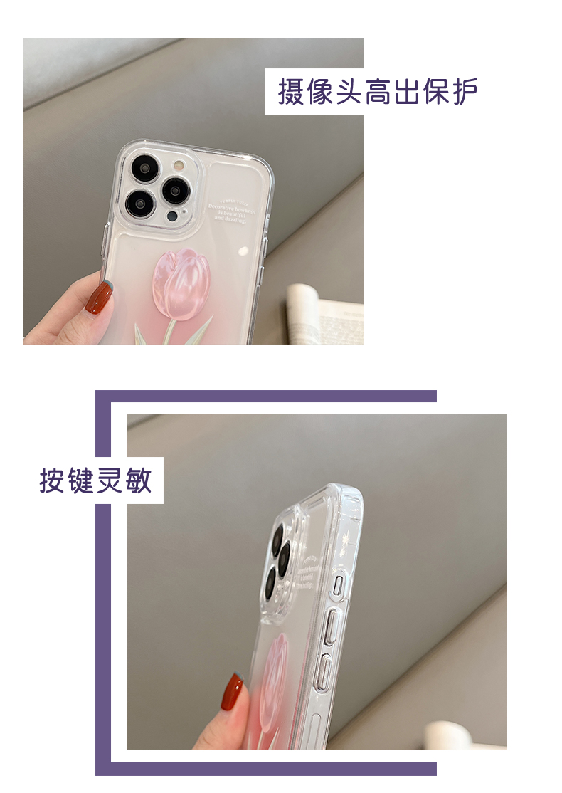 適用iphone14promax手機殼蘋果13暈染郁金香11簡約新款12小眾ins風14plus網紅女款13Pro透明爆款12Pro手機套