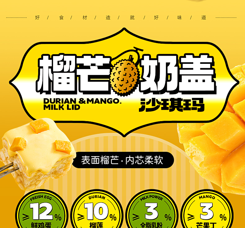 榴蓮芒果雙拼奶蓋沙琪瑪無蔗糖傳統糕點休閑充饑下午茶零食整箱佳