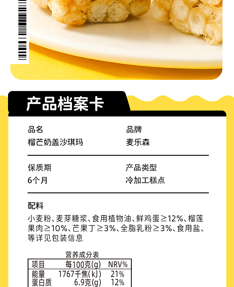 麥樂森榴芒奶蓋沙琪瑪32枚/箱休閑爆款零食小吃表面榴芒內芯柔軟
