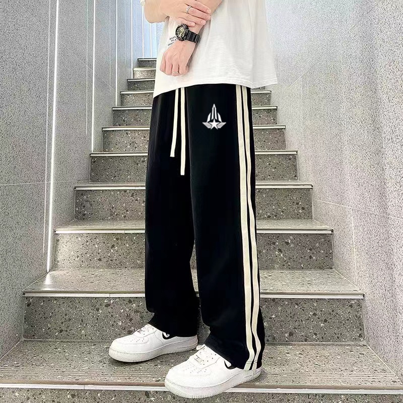 運動褲子男春秋季薄款美式潮流百搭直筒衛褲側邊條紋學生闊腿長褲