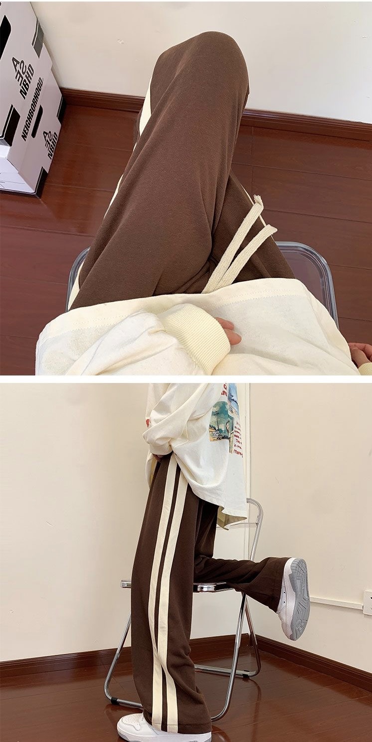 美式側邊條紋褲子男春秋季學生直筒寬松衛褲男女同款闊腿休閑長褲