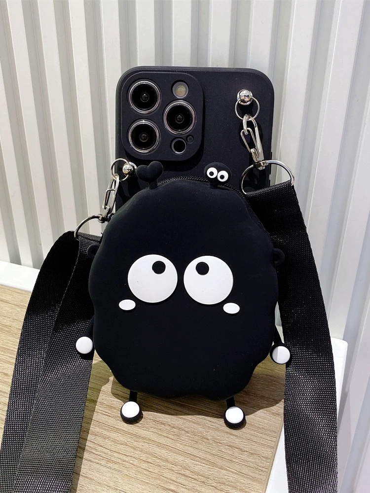 黑色煤球零錢包適用vivox90手機殼x80/x70pro保護套x60斜挎s17背帶vivos16/s15/s12卡通可愛y78全包女y77掛脖