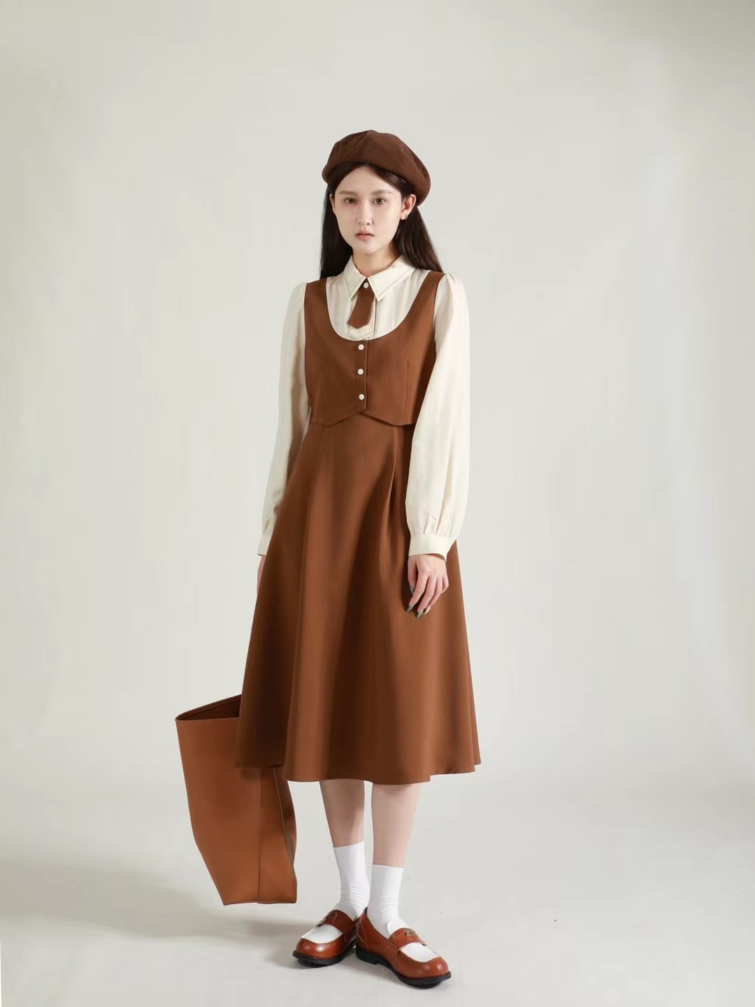 法式高級設計感帶馬甲領結兩件套連衣裙2023新款氣質收腰顯瘦長裙