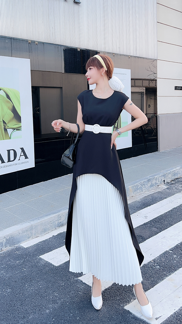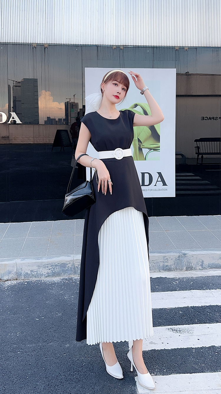 網紅爆款大擺顯身材修身顯瘦氣質遮肚子減齡休閑連衣裙女夏季新款