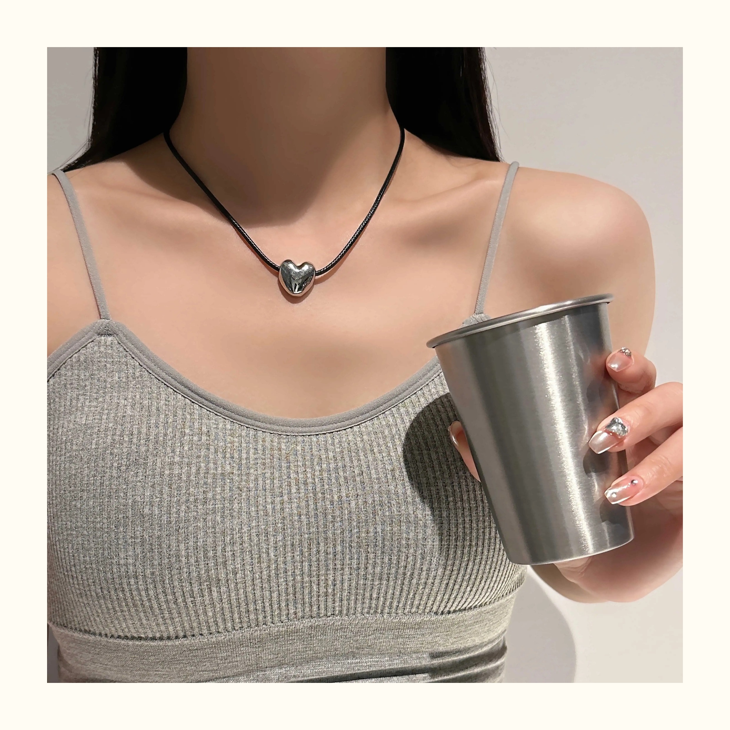 鈦鋼愛心黑色編織繩項鏈2023新款鎖骨鏈女款輕奢小眾裝飾頸鏈配飾