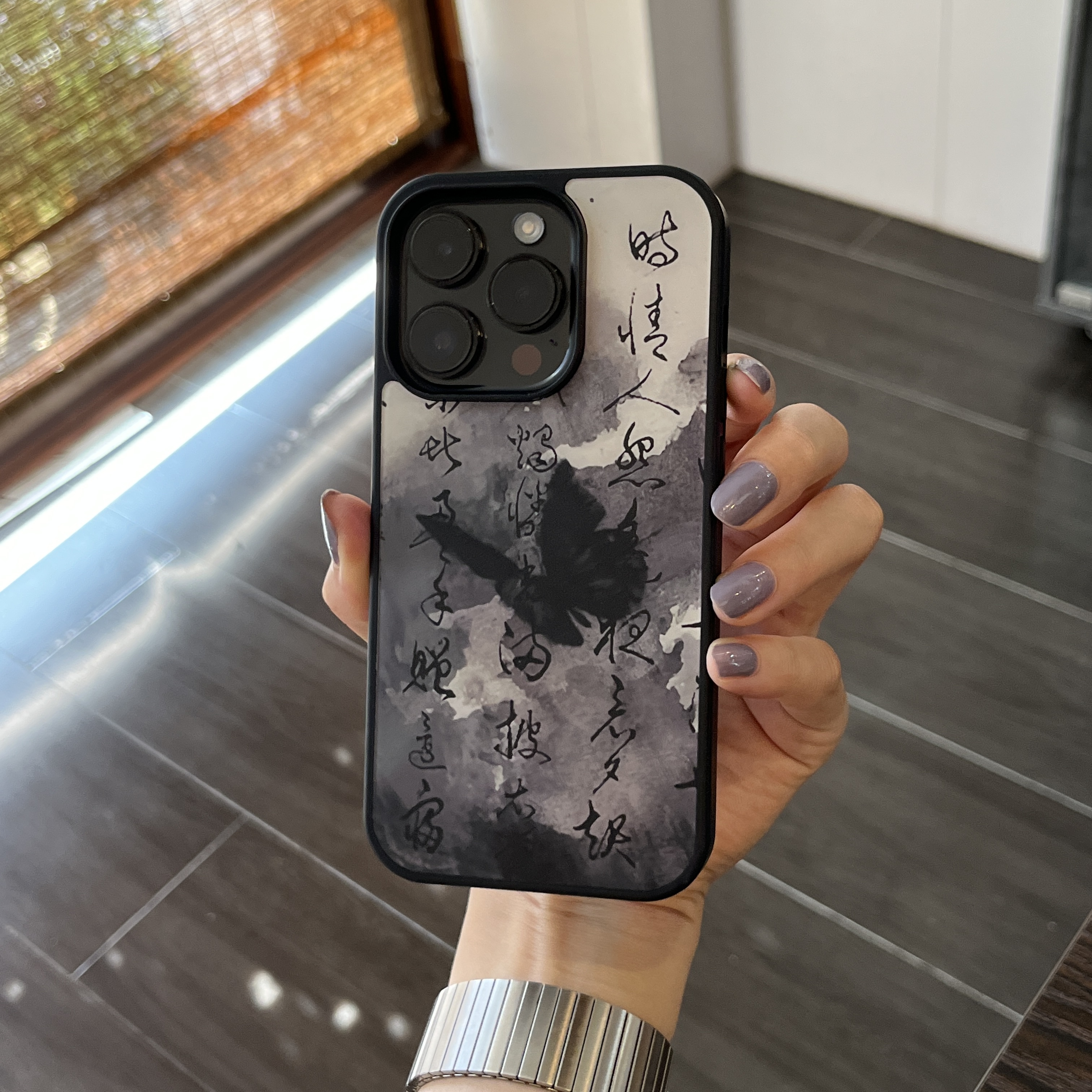 新中式磨砂潑墨書法蝴蝶藝術生適用于蘋果14promax手機殼iPhone13個性14pro小眾13pro帶磁吸12高級感14保護殼