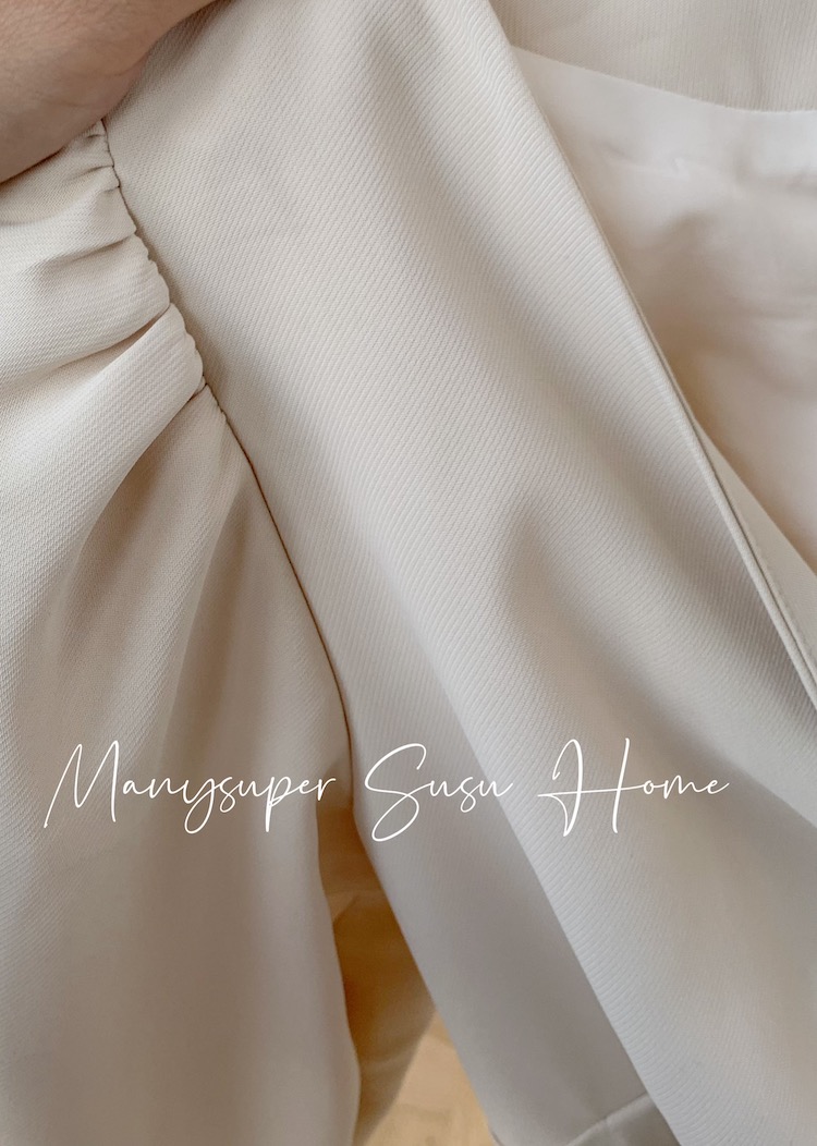 Fening Maje 新款法式印花象牙白色交叉收腰梨形身材收腰連衣裙女