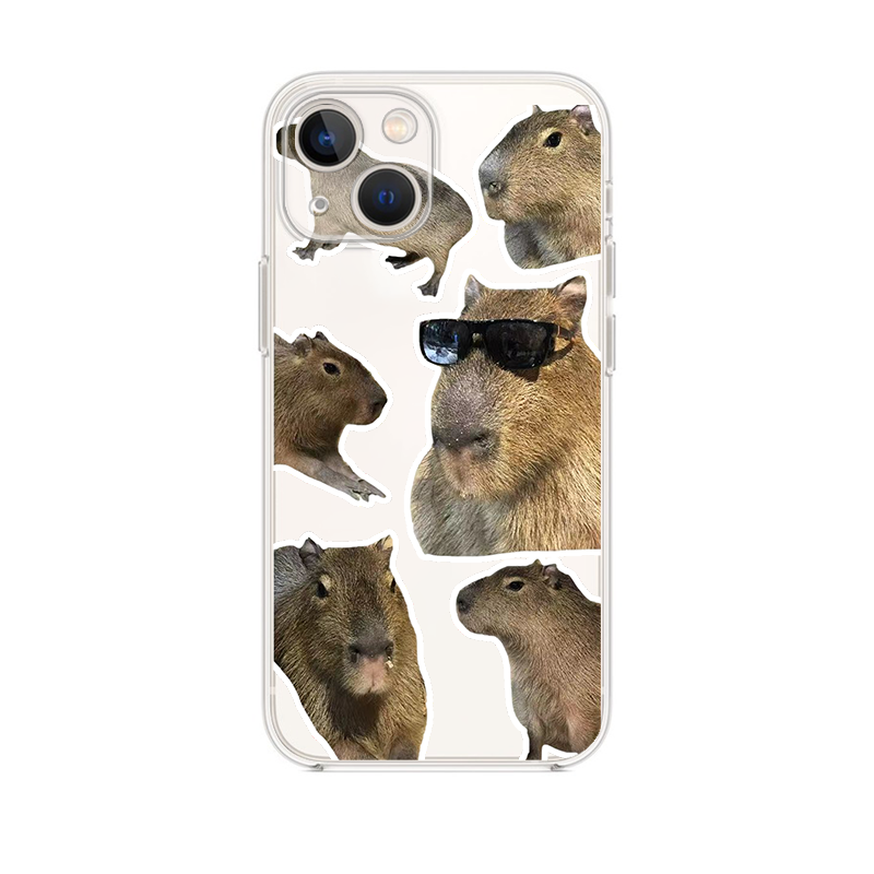 可愛水豚手機殼適用iPhone14promax蘋果15菲林13簡約12創意xs硬11華為mate60榮耀P50小米vivox90一加opporeno