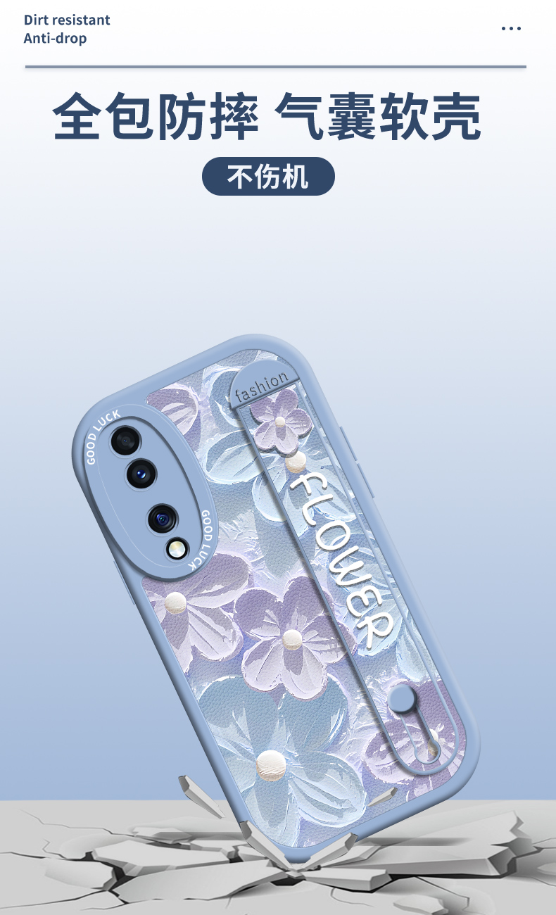 腕帶適用華為榮耀90手機殼honor70的新款60藍色50保護套80pro女pro十掛繩手腕por花花朵gt小羊皮50se全包防摔