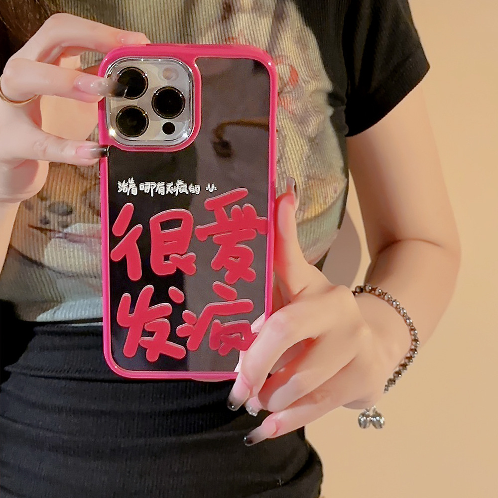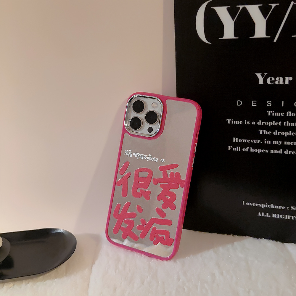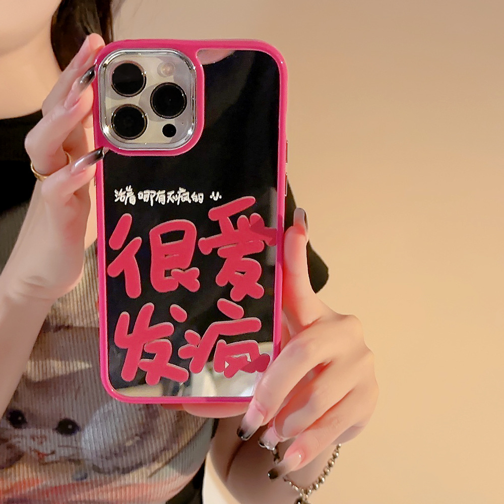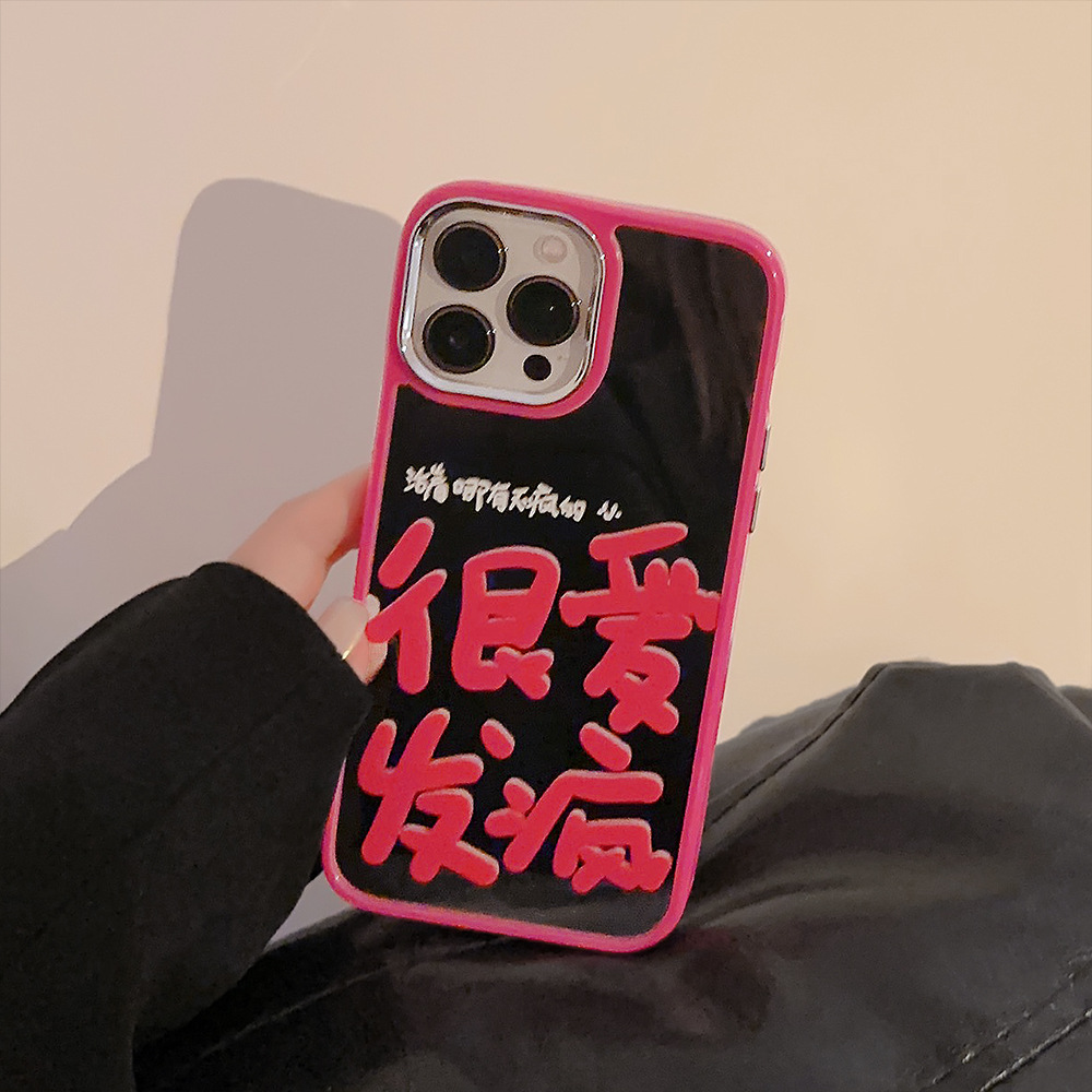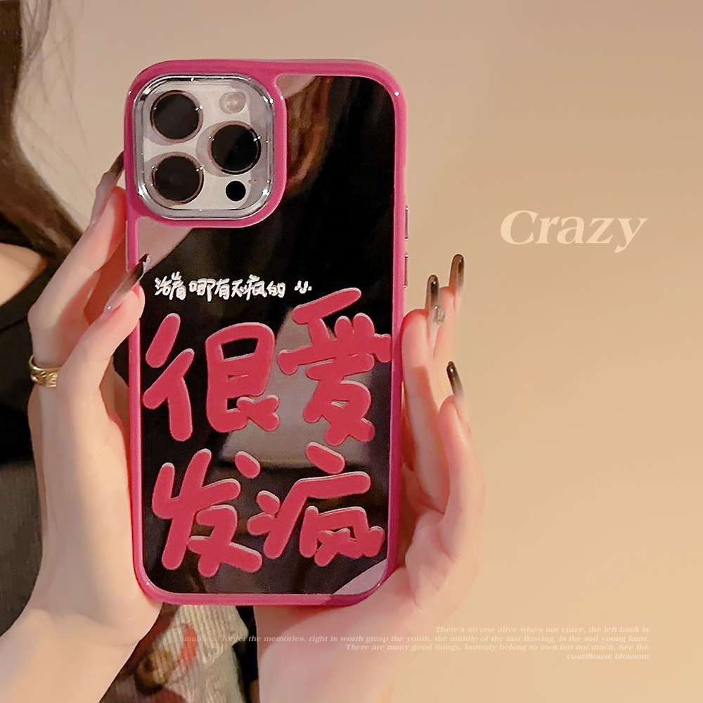 很愛發瘋適用于蘋果13promax電鍍手機殼iphone14個性12創意文字13玫紅鏡面11promax發瘋文學14pm小眾高級感女