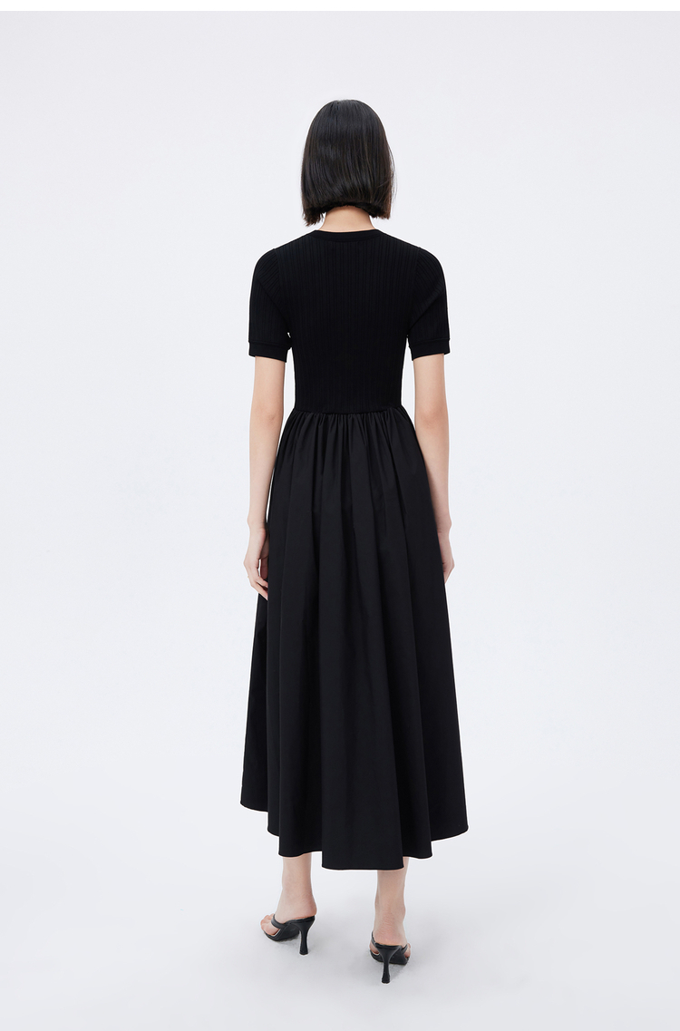 太平鳥 2023年秋季新款赫本風連衣裙針梭織拼接修身氣質針織裙女