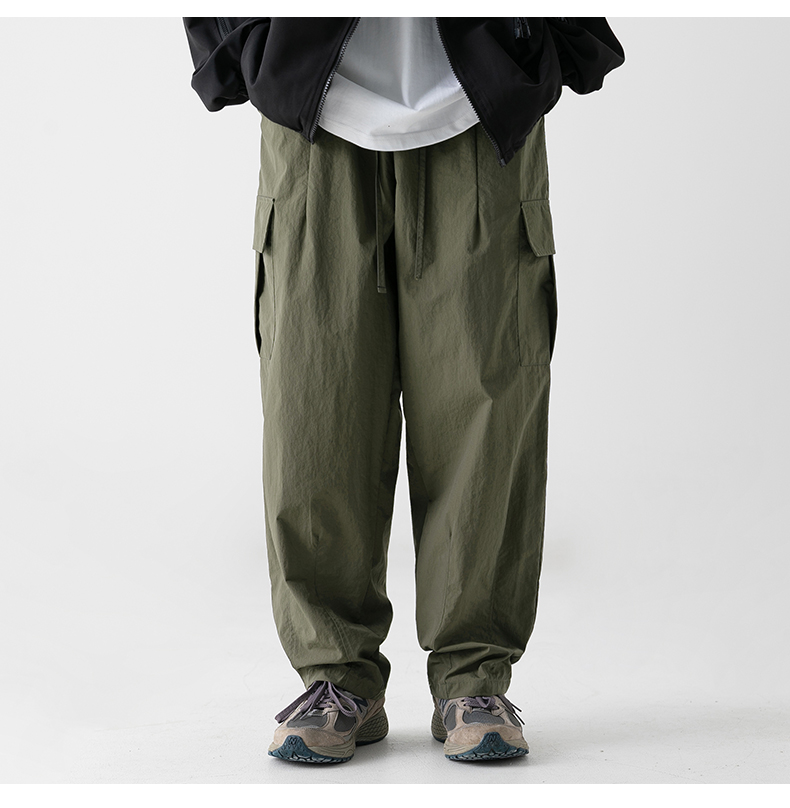 微皺質感防潑水機能工裝長褲男春秋季寬松百搭日系戶外直筒休閑褲