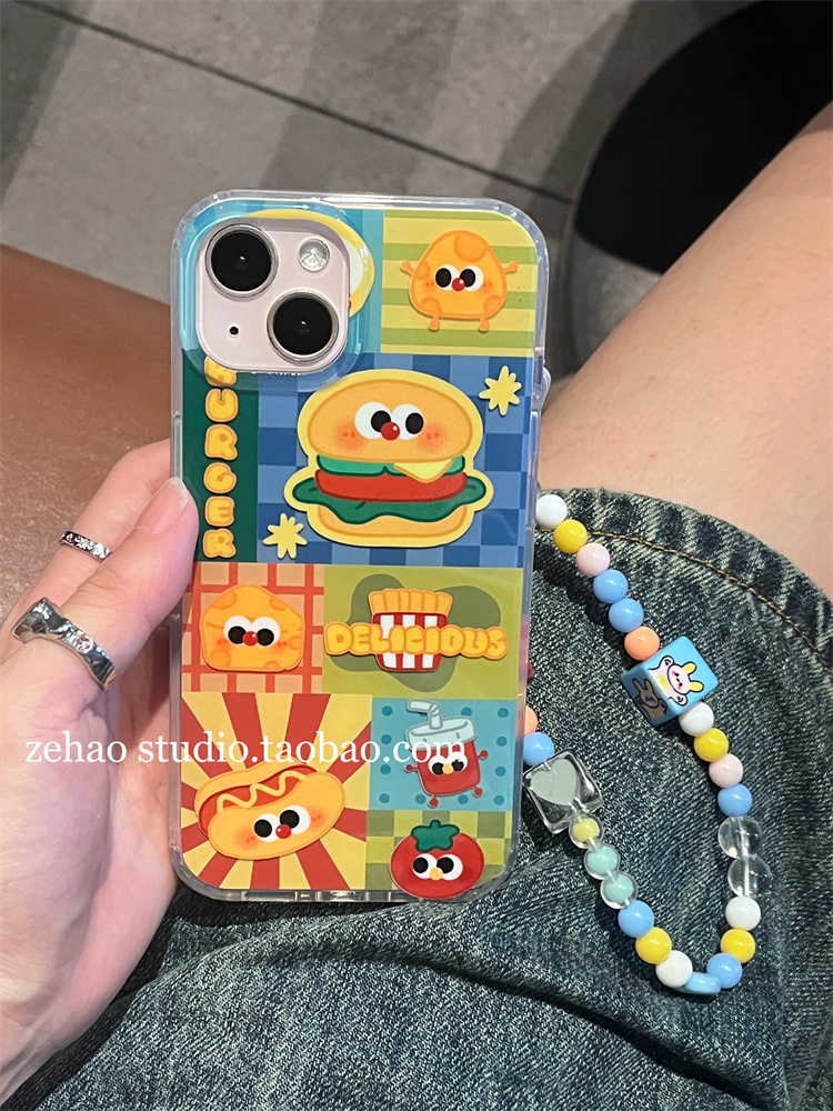 zehao studio*ins風卡通薯條漢堡包雙層印花手機殼11適用于iphone14promax蘋果13新款12手機殼全包14情侶小眾