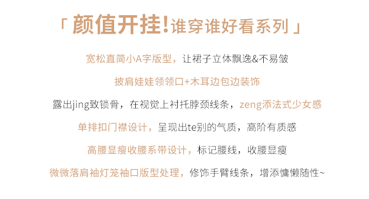 森馬泡泡袖荷葉邊大翻領2023連衣裙