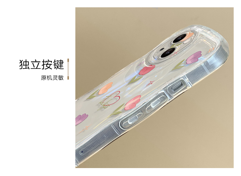 適用于蘋果14promax手機殼iPhone13全包防摔12/11pro透明xs/xr碎花郁金香新女款7plus波浪邊8p/se2氣墊保護套