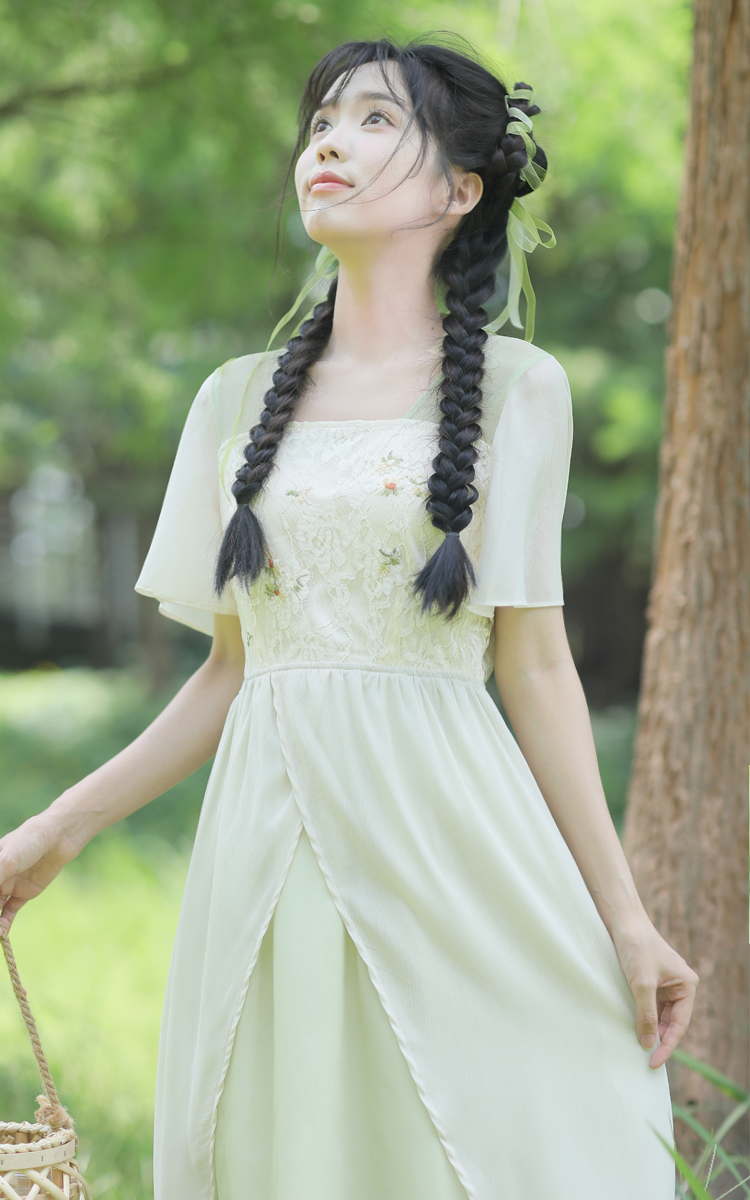 十二星座漢服天秤座夏季法式方領國風漢元素改良版網紗拼接連衣裙