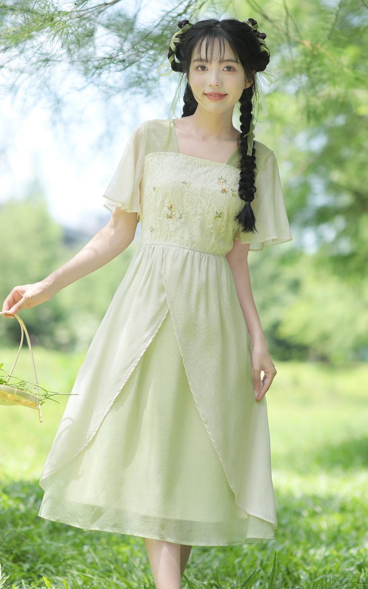 仙女超仙復古國風改良漢元素漢服裙連衣裙2023夏季款日常拍照森系