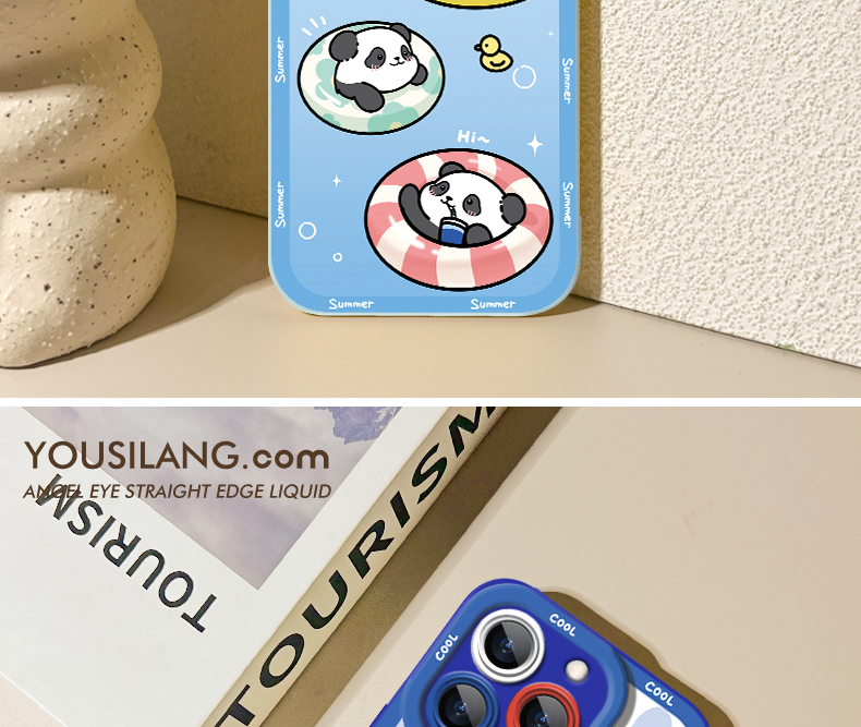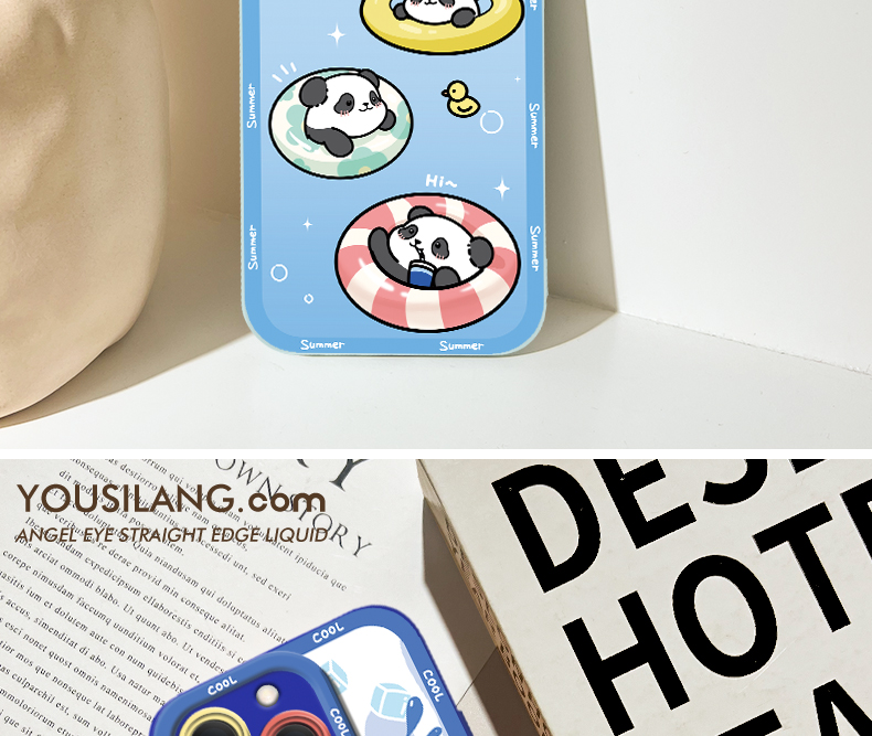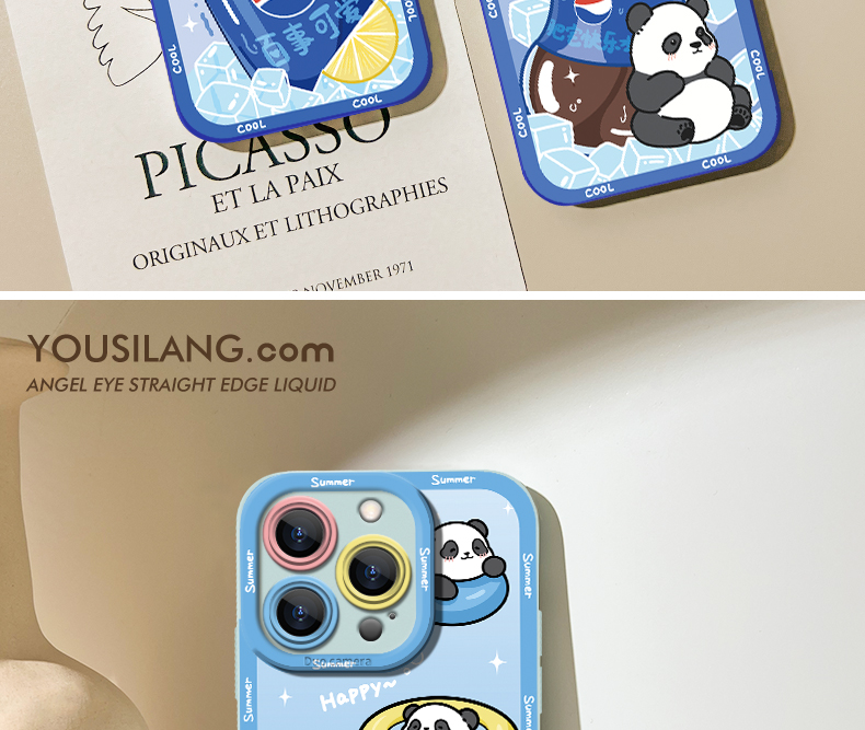 游泳熊貓適用蘋果13手機殼iphone14pro貓眼11pm新款13/14卡通xr液態硅膠X女生8p直邊mini創意Max超火max外套