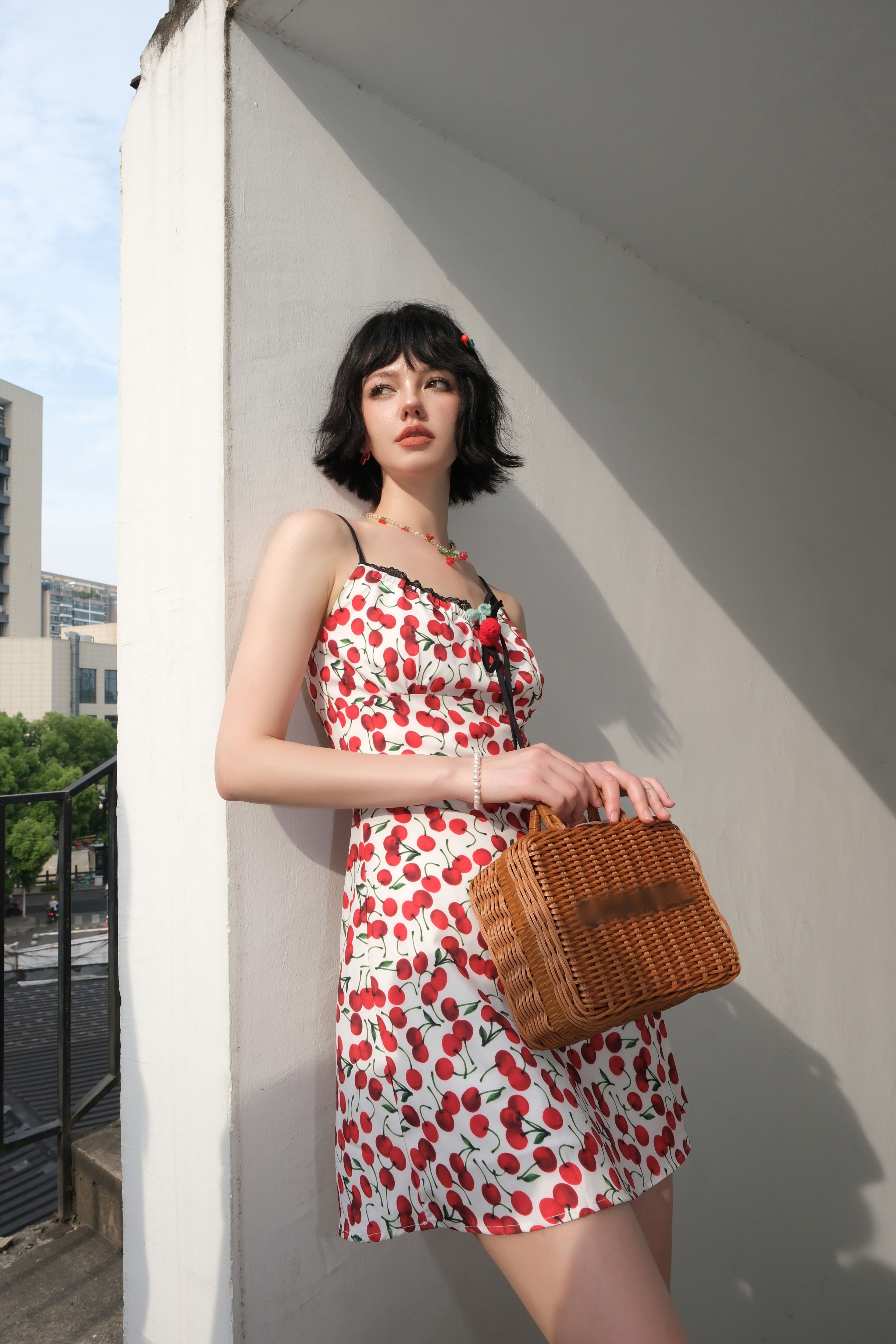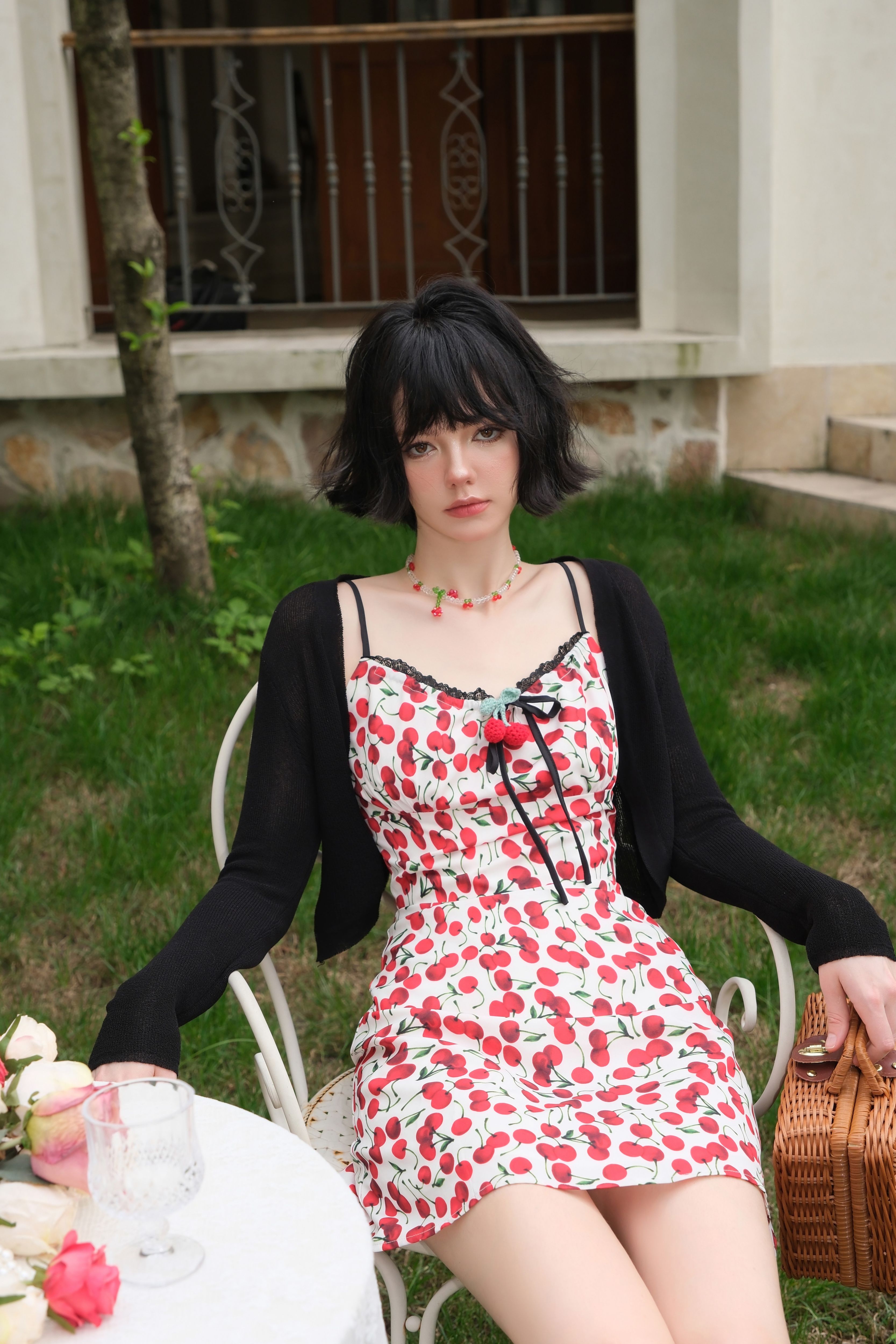 CLOUDSEASON櫻桃輕紗吊帶裙女夏季新款連衣裙甜美可愛小個子a字裙