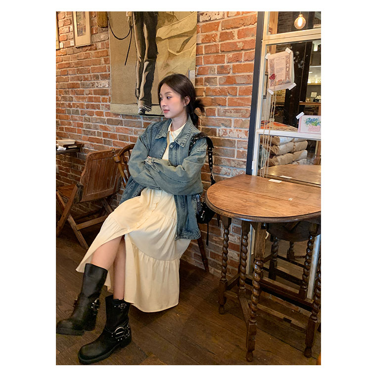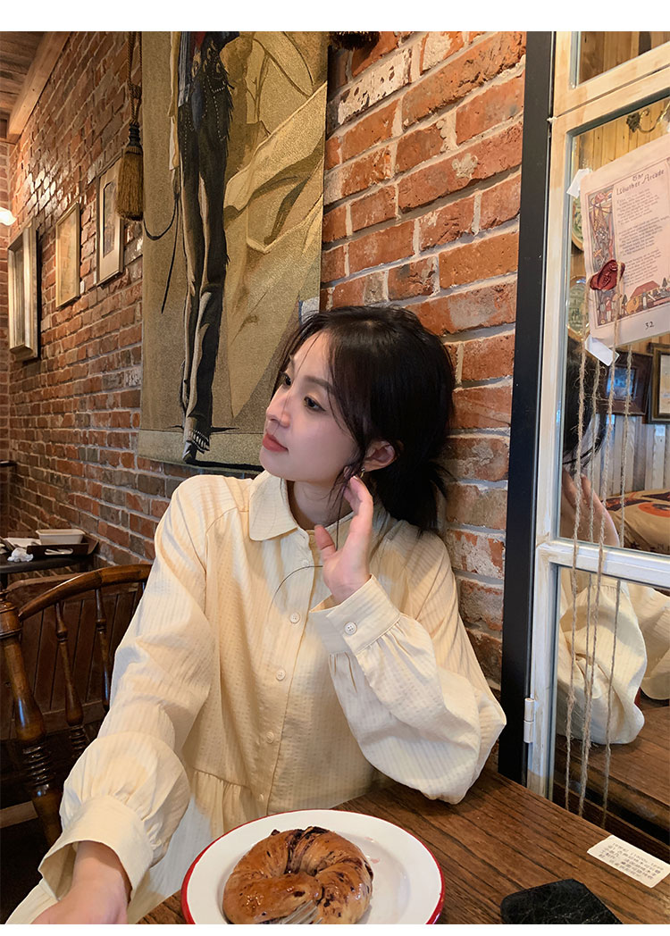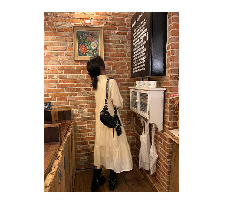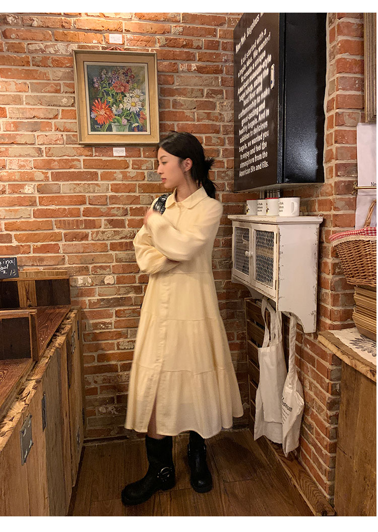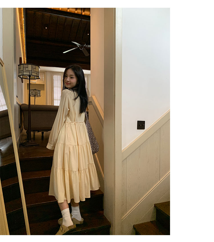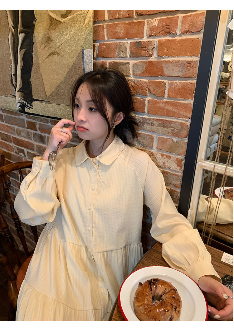 三木社 自制花邊娃娃領長袖連衣裙秋季中長款初戀裙寬松收腰裙子