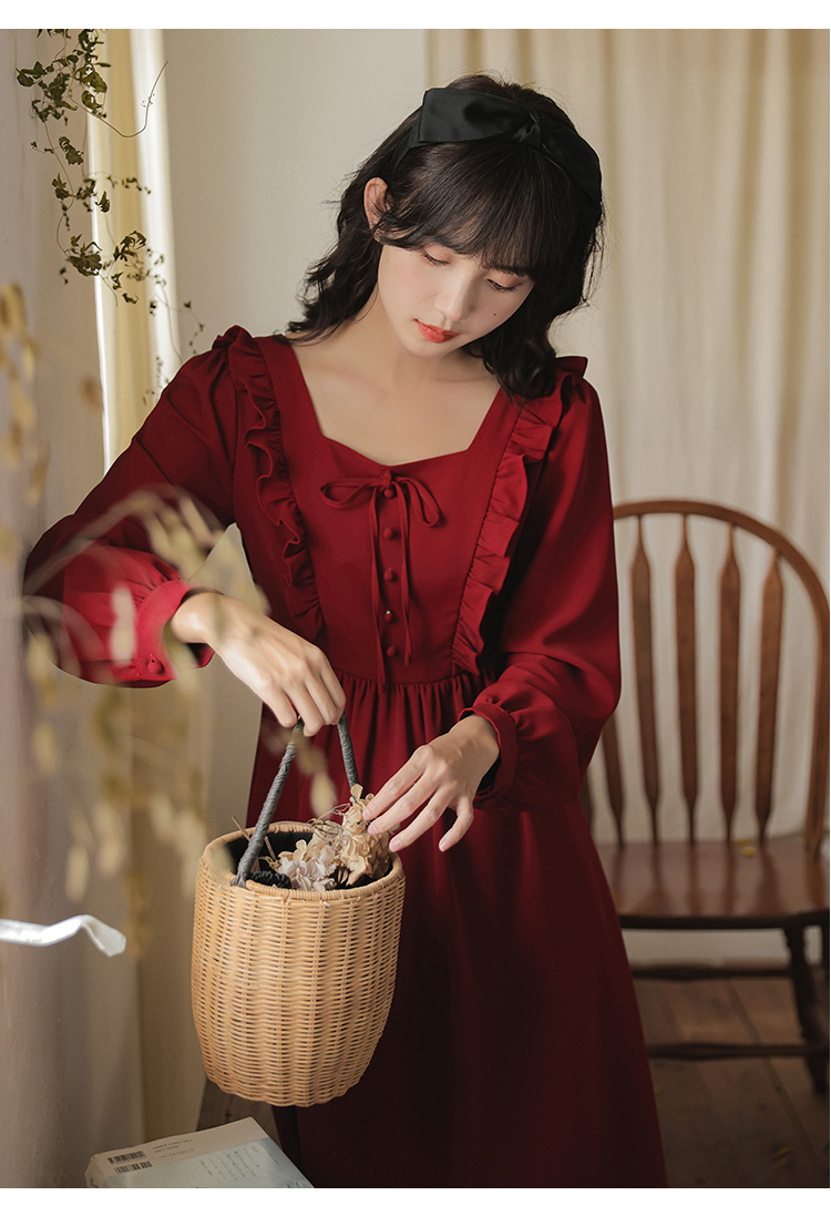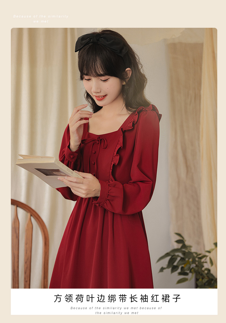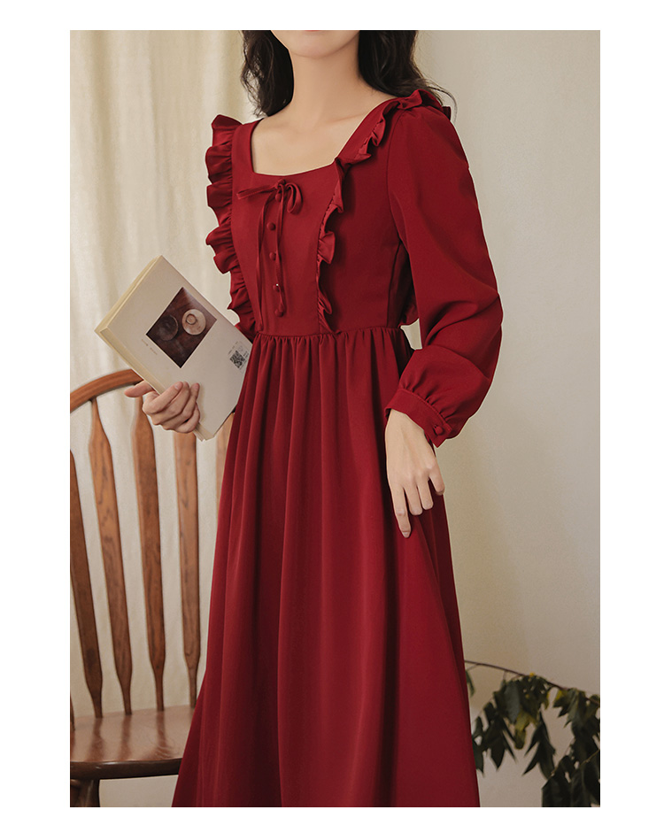 法式別致絕美紅色連衣裙女秋季新款高級感氣質回門服訂婚禮服裙子