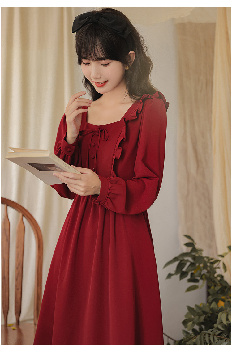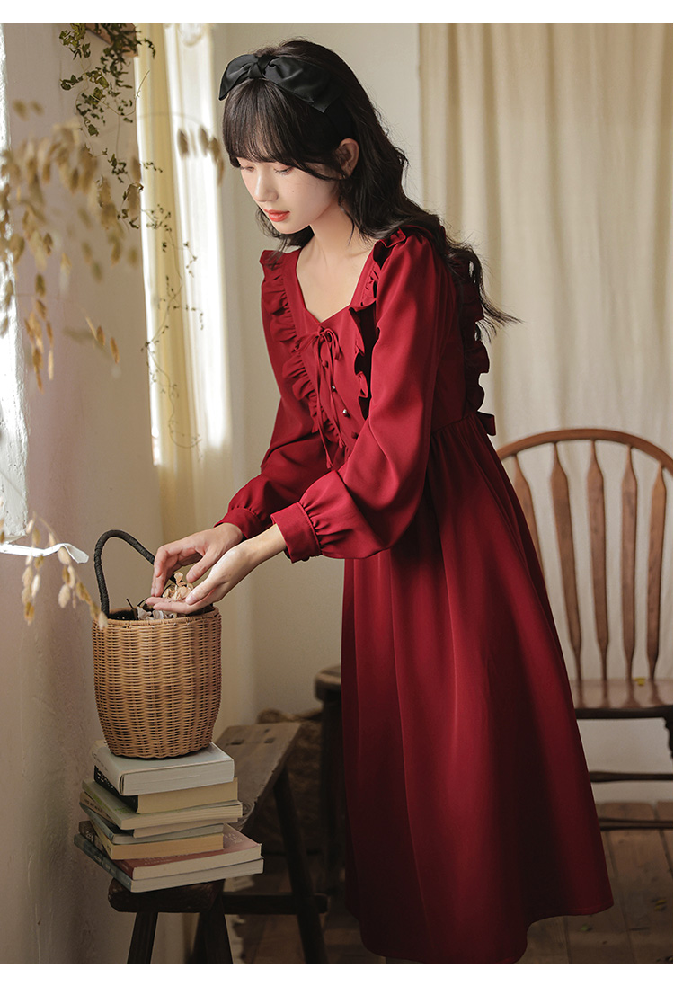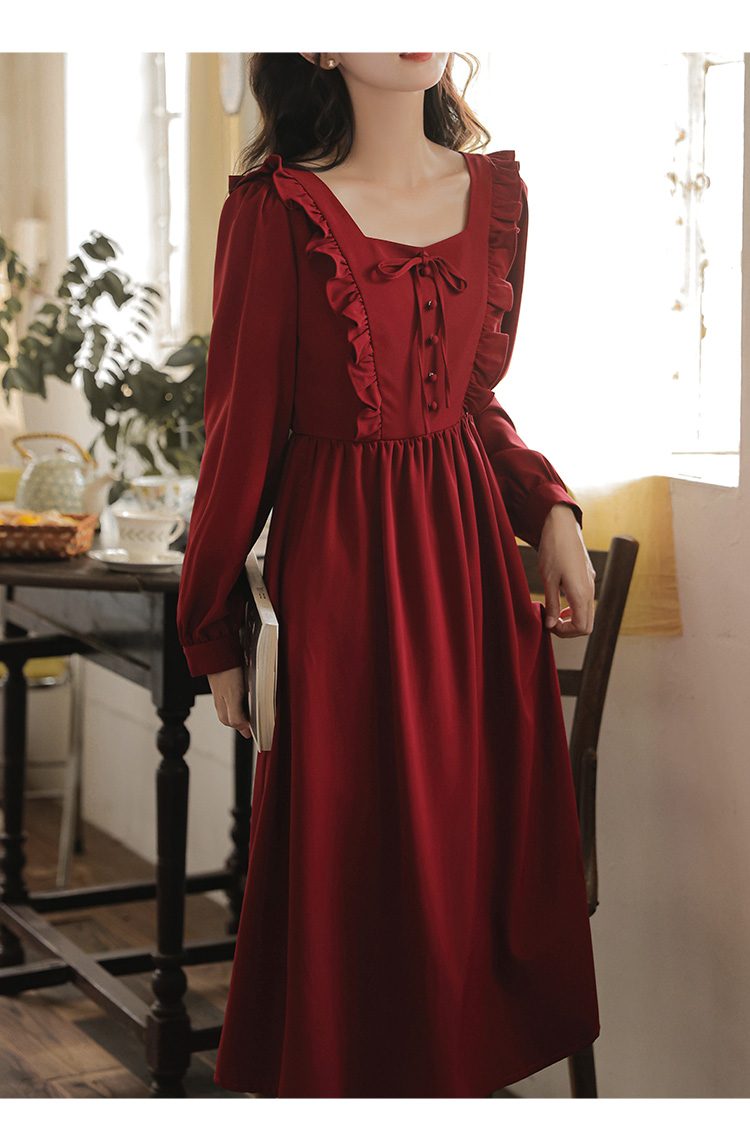 紅色連衣裙2023新款紅裙子女秋冬復古氣質法式別致長裙赫本小紅裙