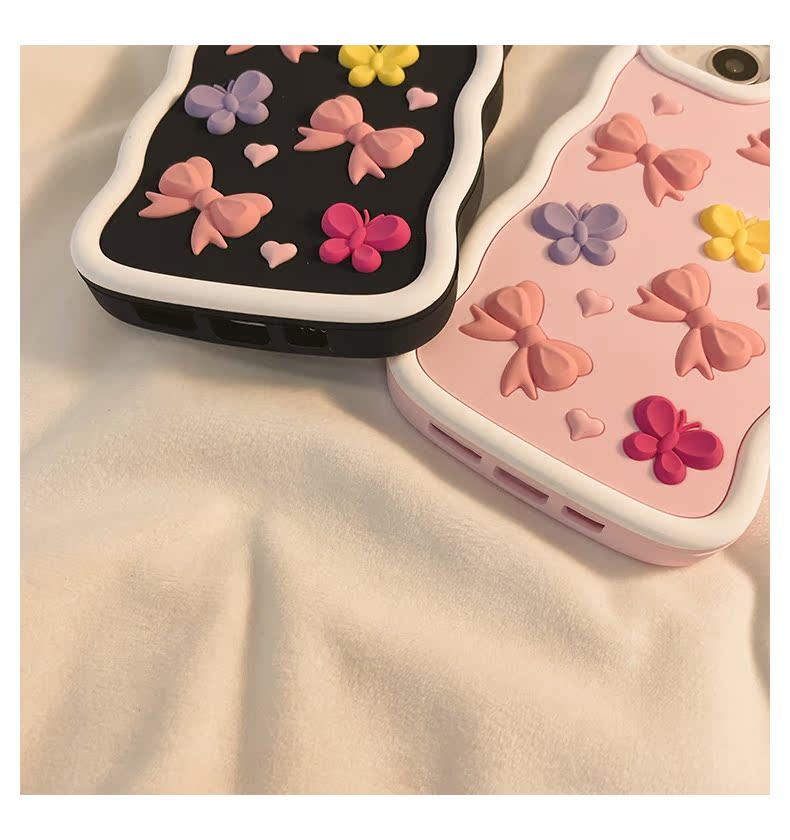 獨殼 立體彩色蝴蝶結愛心適用蘋果14ProMax手機殼少女心iphone13新款12硅膠14pro小眾11女13promax防摔全包軟