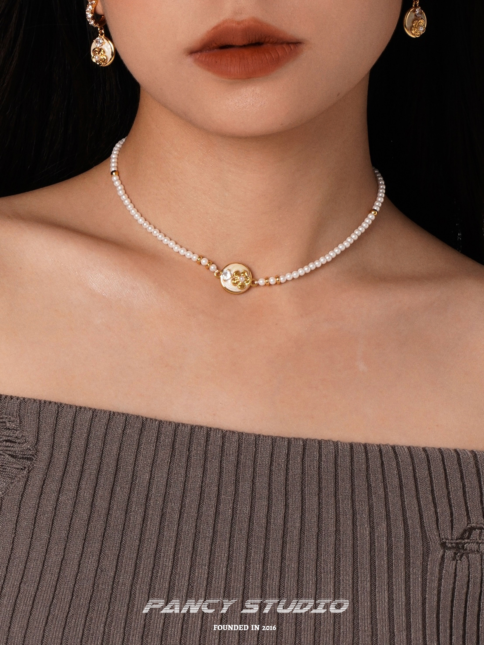PANCY復古宮廷風高級感法式珍珠小花項鏈鎖骨鏈輕奢小眾吊墜頸鏈