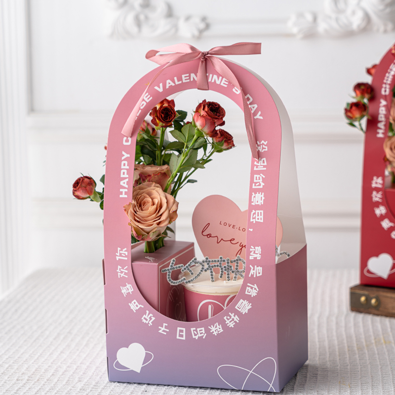 網紅七夕情人節波波杯手提盒蛋糕裝飾擺件love愛心節日快樂插件