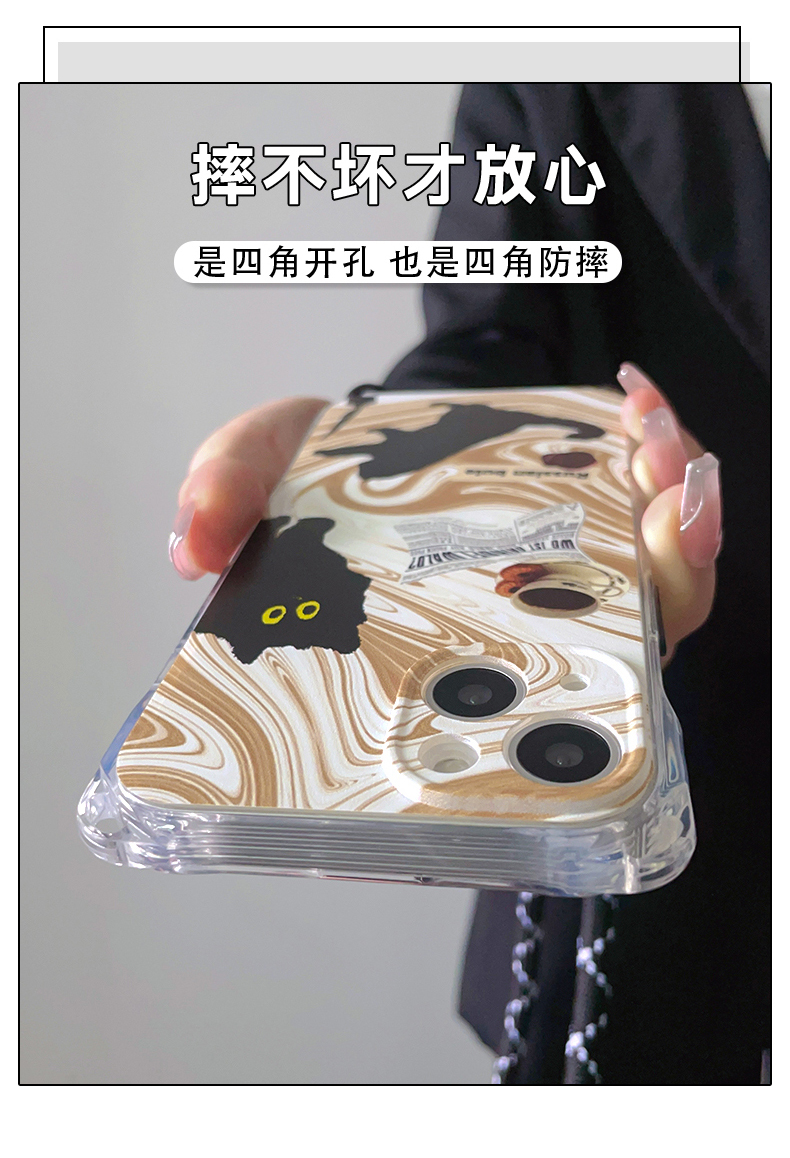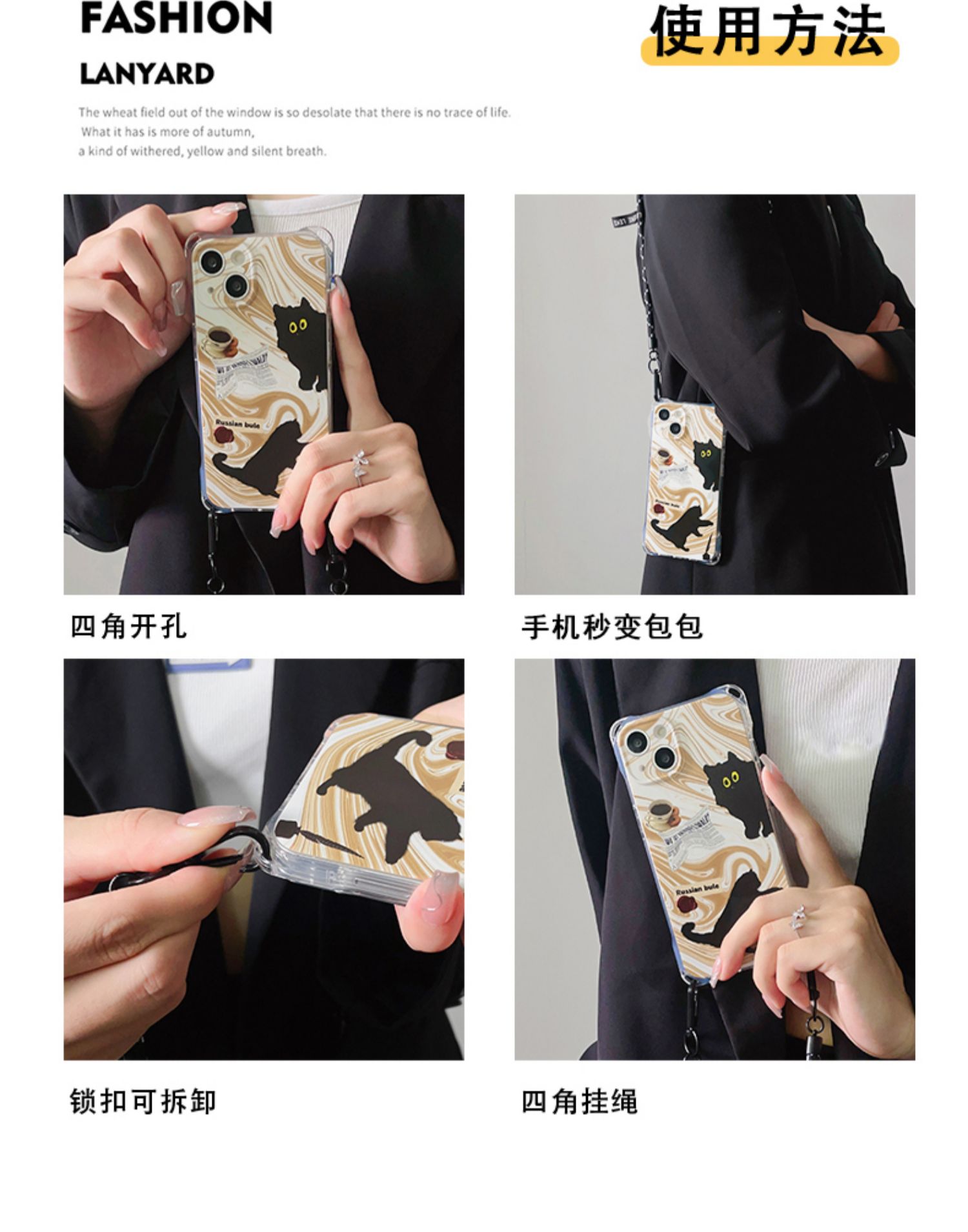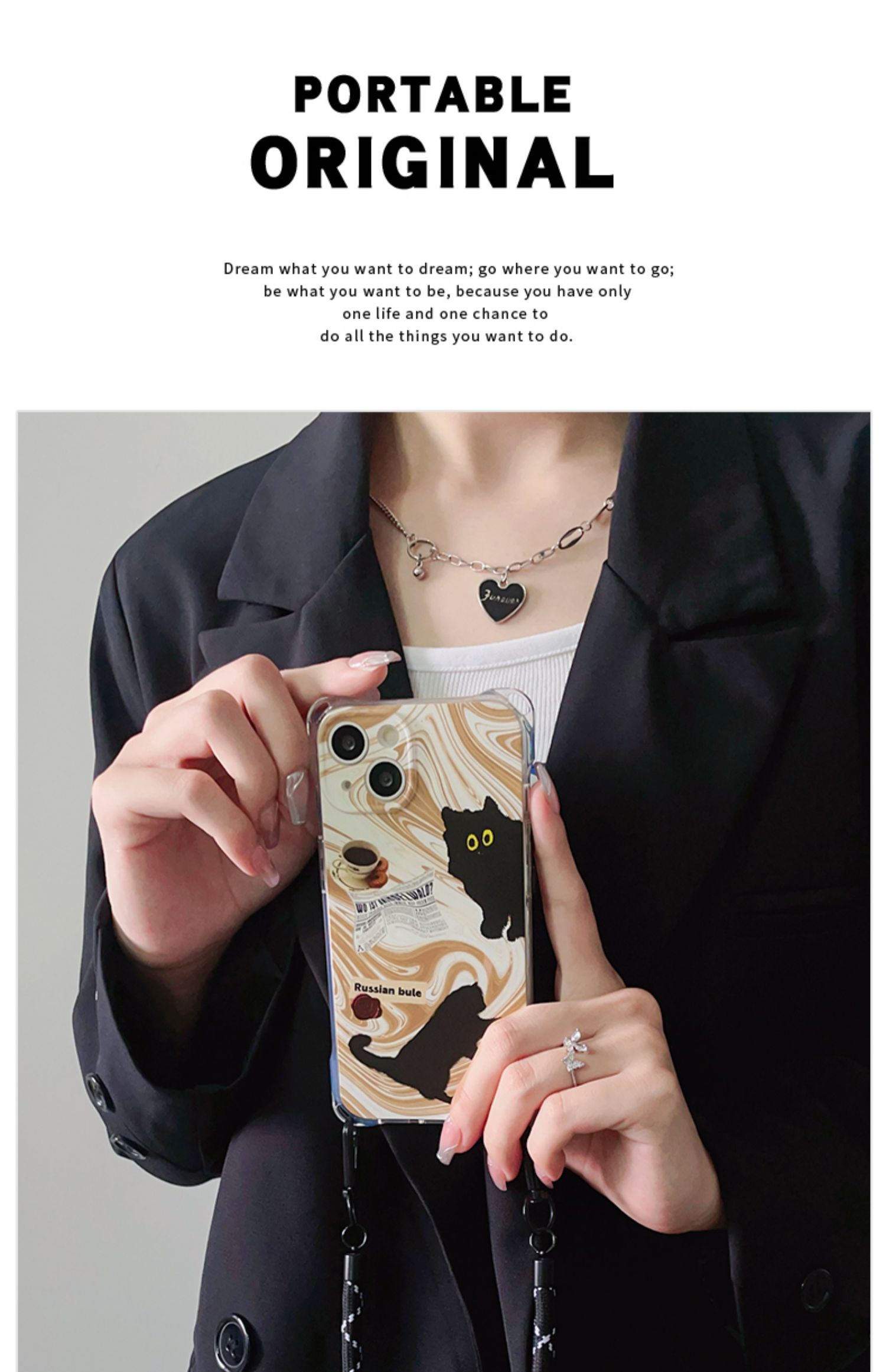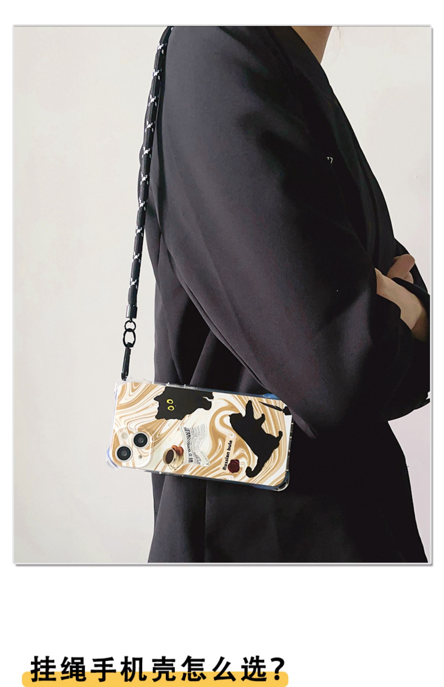 蘋果13手機殼掛繩手腕適用iphone14promax四角開孔硅膠14pro咖啡貓咪11單肩手提12pro可愛韓系xsmax樂殼原創