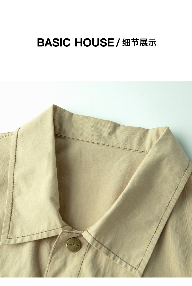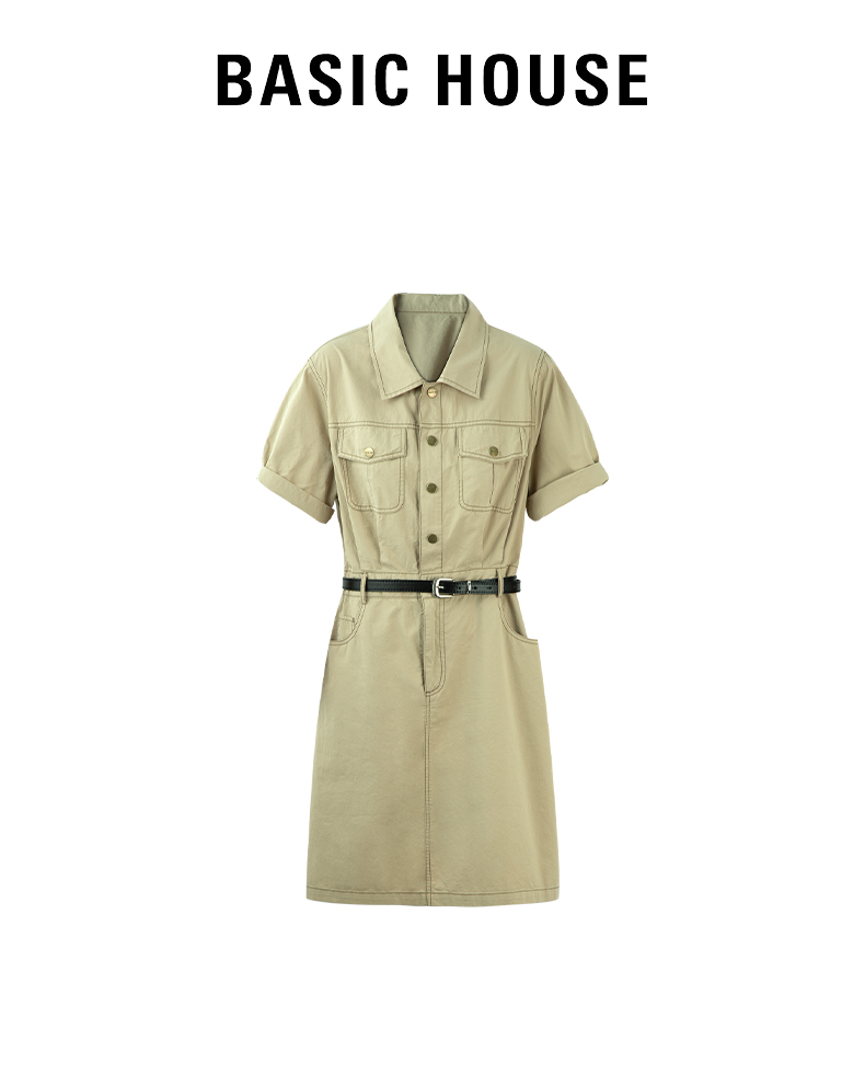 Basic House/百家好法式工裝襯衫裙2023夏季收腰顯高設計感連衣裙