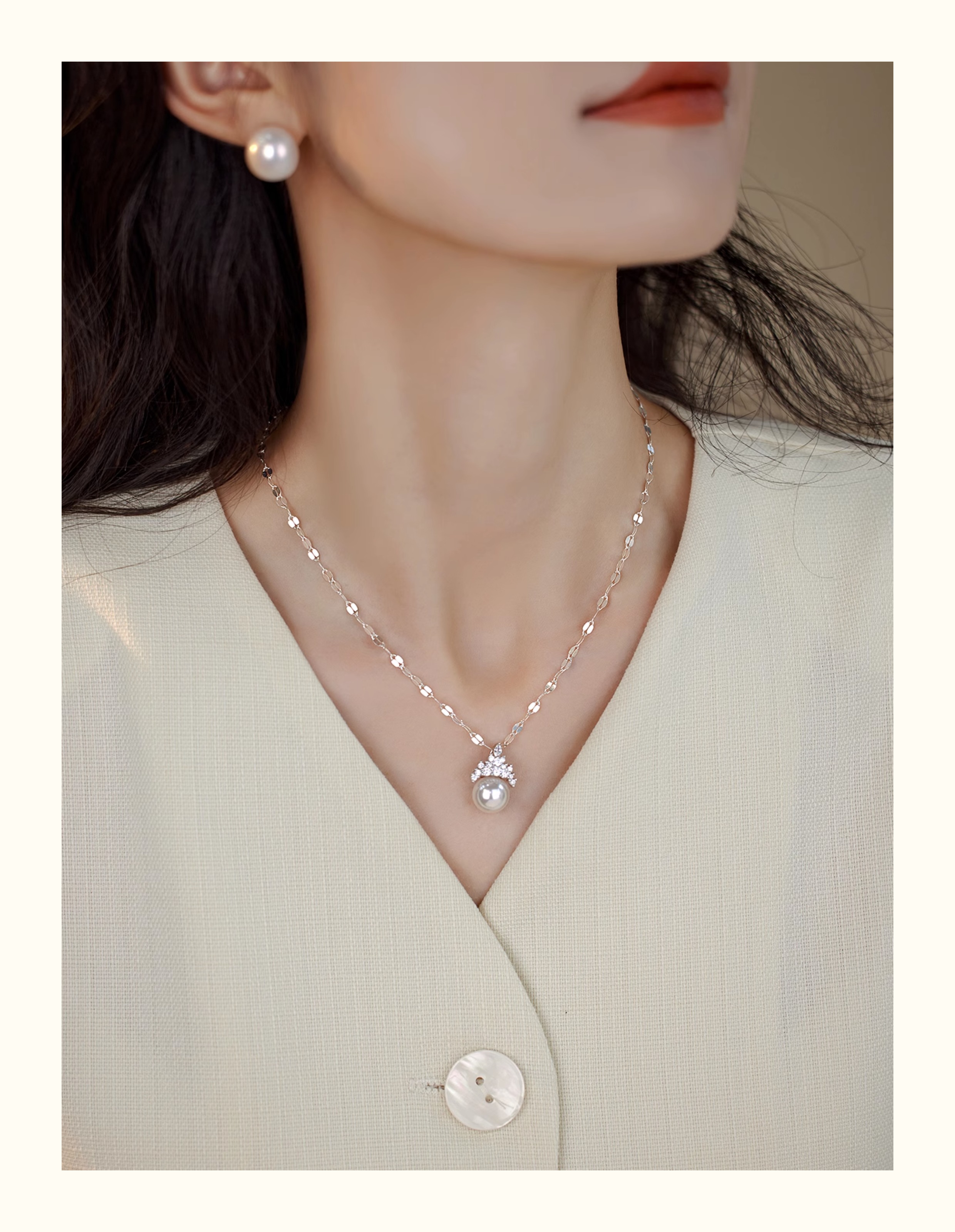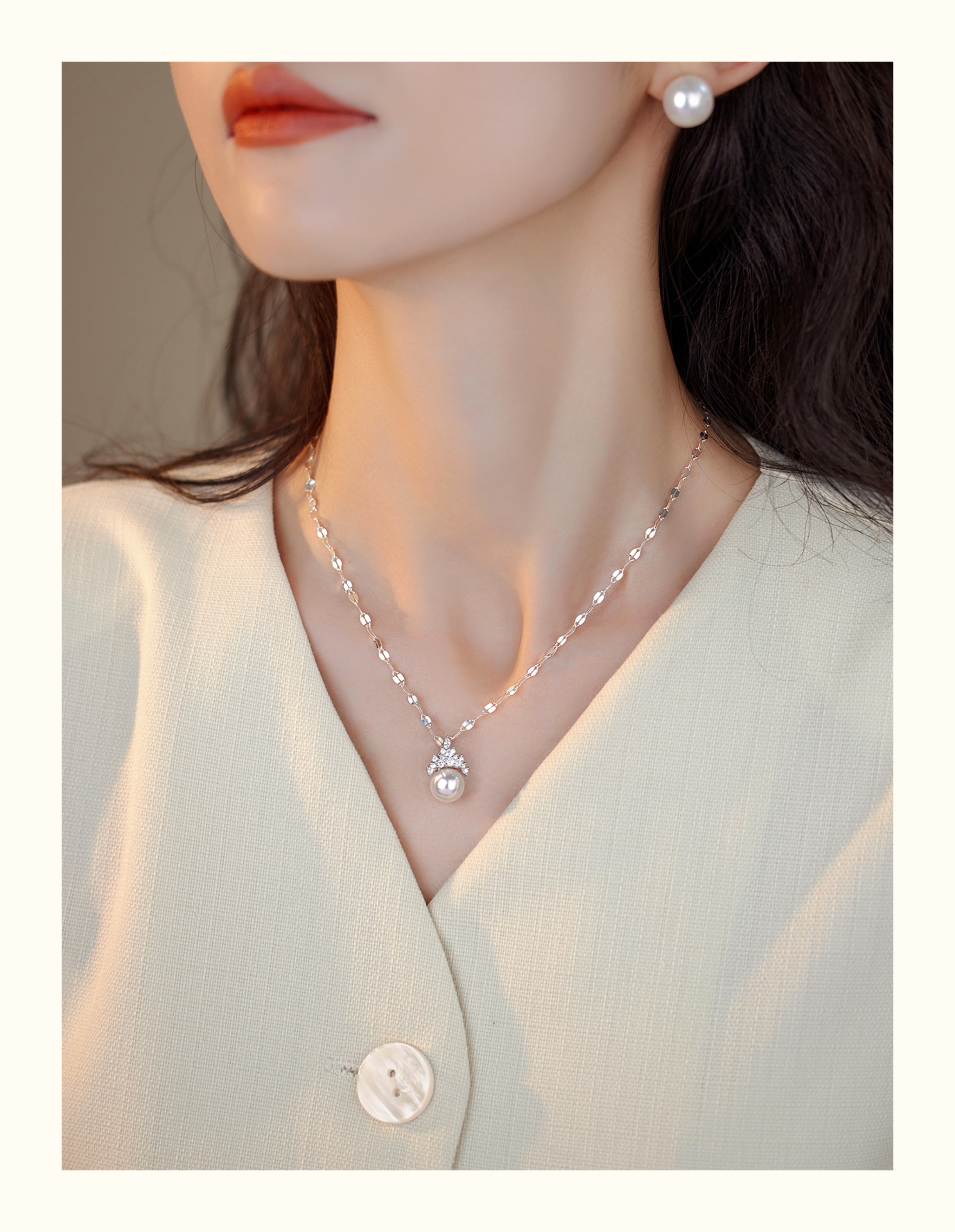 賽賽莉安微鑲閃鉆施家珍珠S925純銀項鏈簡約輕奢氣質項鏈個性禮物