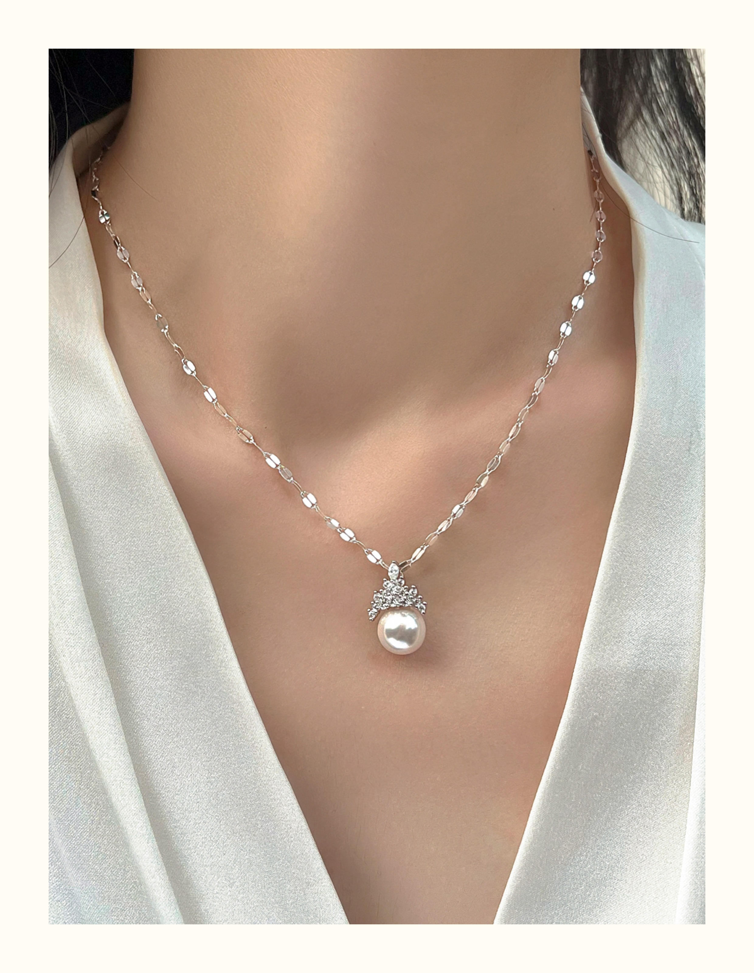 賽賽莉安戴妃款簡約碎銀子項鏈S925純銀珍珠小眾設計高級感鎖骨鏈
