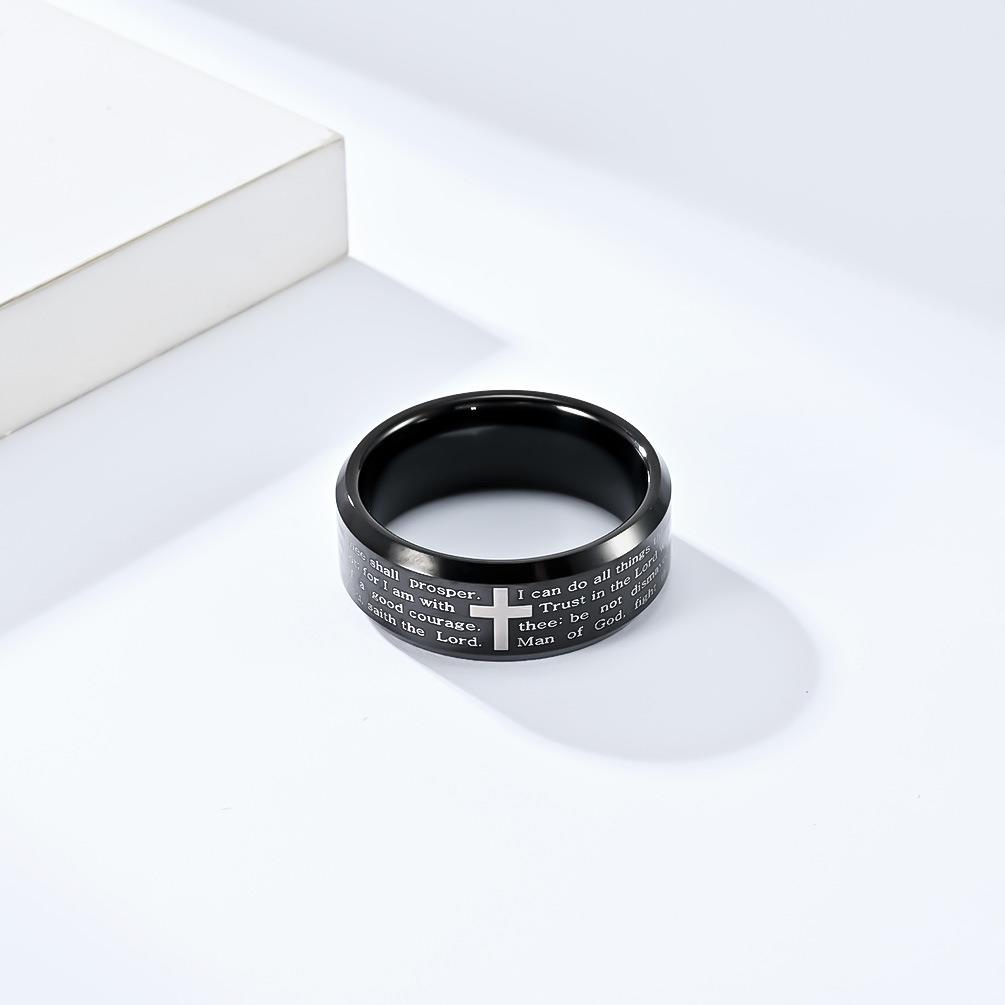 歐美男士嘻哈ins鎢鋼鐳射十字架英文戒指男生小眾食指指環配飾品