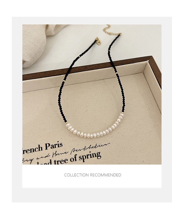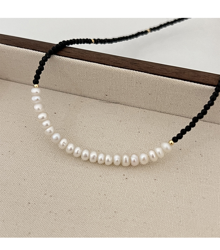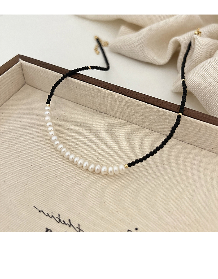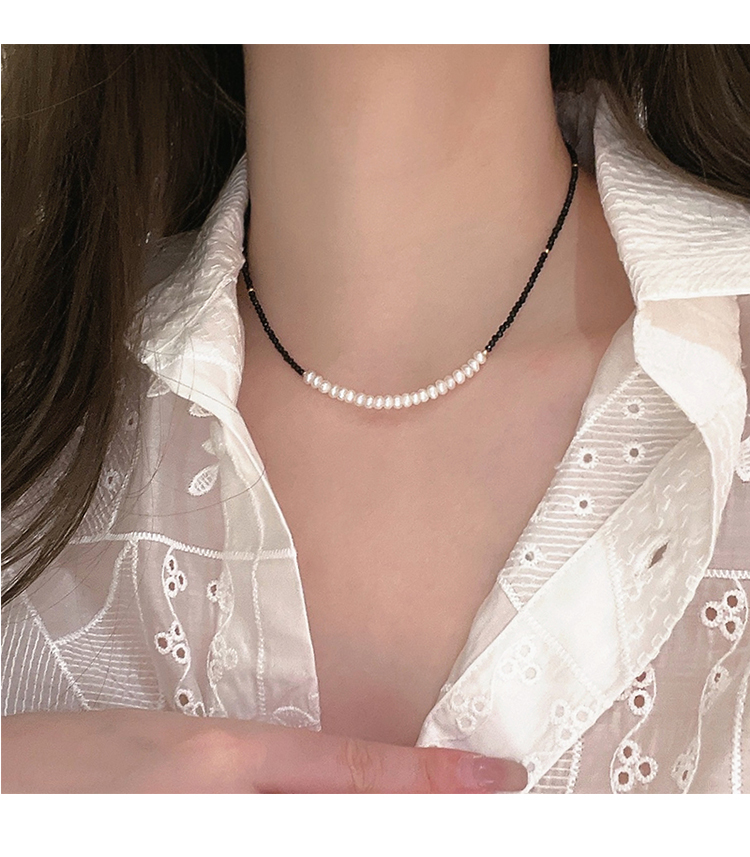 天然淡水珍珠項鏈女黑色水晶鎖骨鏈頸鏈小眾飾品高級感配飾
