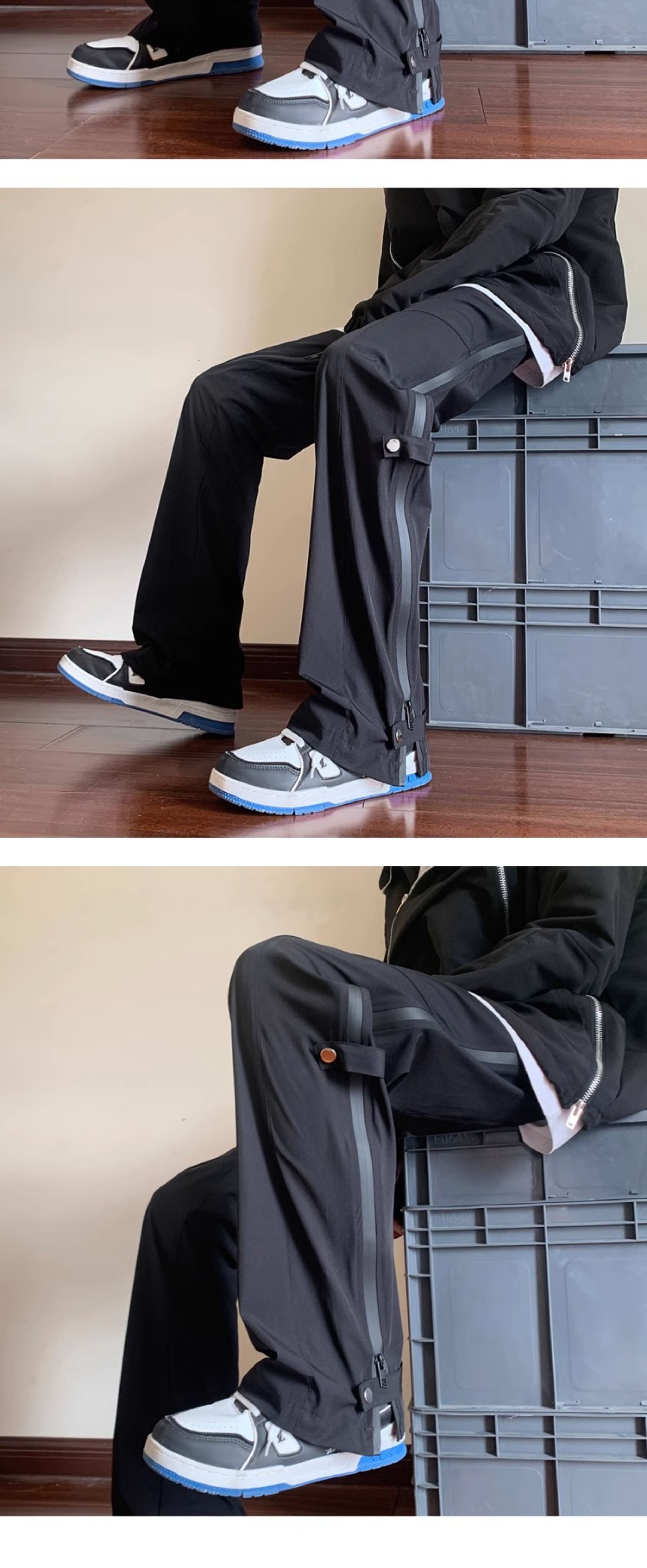 美式機能風沖鋒褲子男速干苦春秋季大碼側邊拉鏈設計感高街休閑褲
