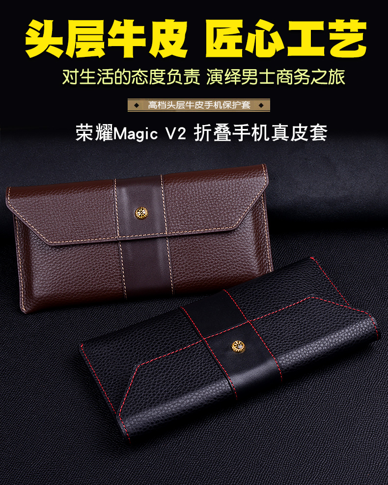 沃比羅適用于榮耀MagicV2手機保護套時尚奢華高檔商務榮耀MagicV2時尚奢華新款個性簡約手工制作信封款男女款